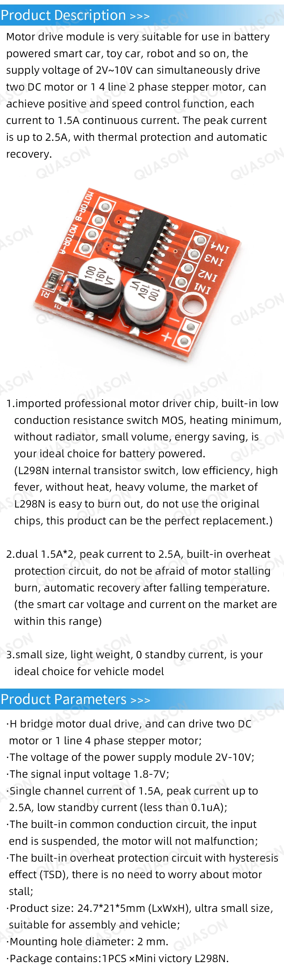Модуль привода постоянного тока, реверсивная ШИМ скорость, двойной H Мост, шаговый двигатель Mini Victory L298N