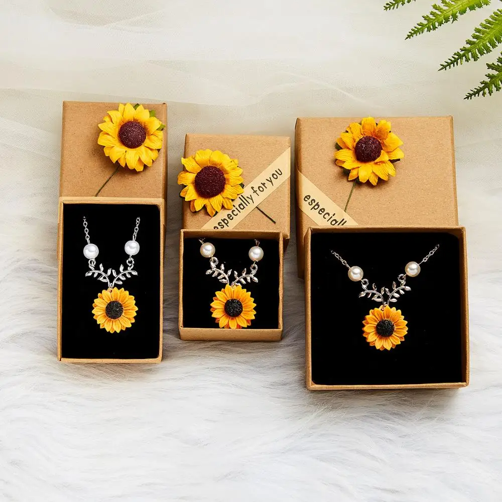 Специально для Васпросто для вас, Подарочная коробка из крафт-бумаги с надписью Подсолнух, Роза для ожерелья, браслета, серег, модная шкатулка для ювелирных изделий