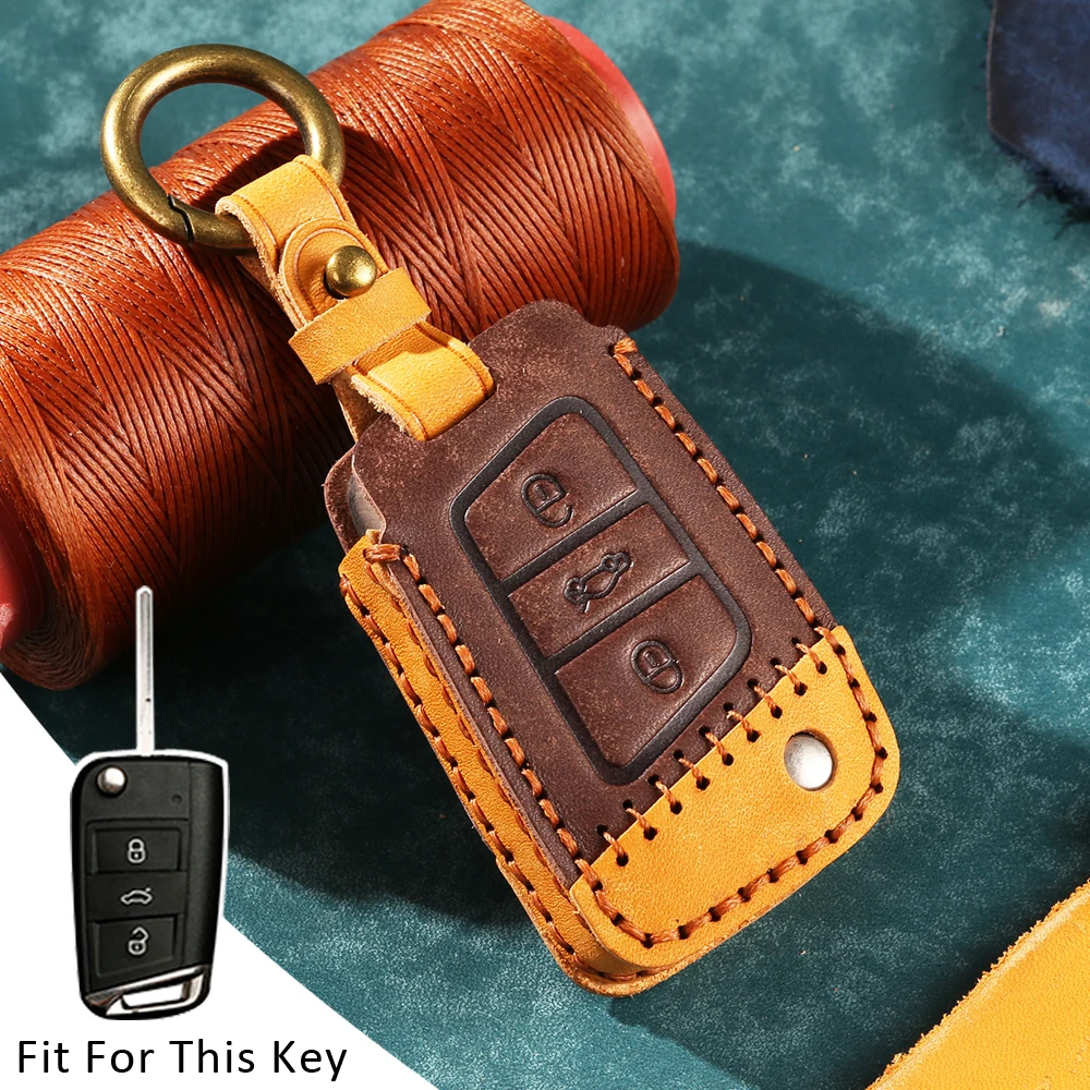 Износостойкий Новый кожаный чехол для автомобильного ключа чехол для Volkswagen VW Golf 7 Mk7 Seat Ibiza Leon Ateca для Skoda Octavia чехол для ключа