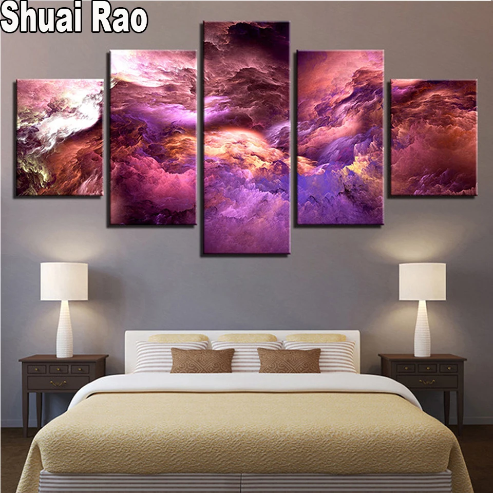 Diy алмазное фиолетовое абстрактное облако 5 шт. Алмазная картина полностью квадратная/круглая дрель Алмазная вышивка Ландшафтный Декор