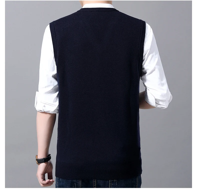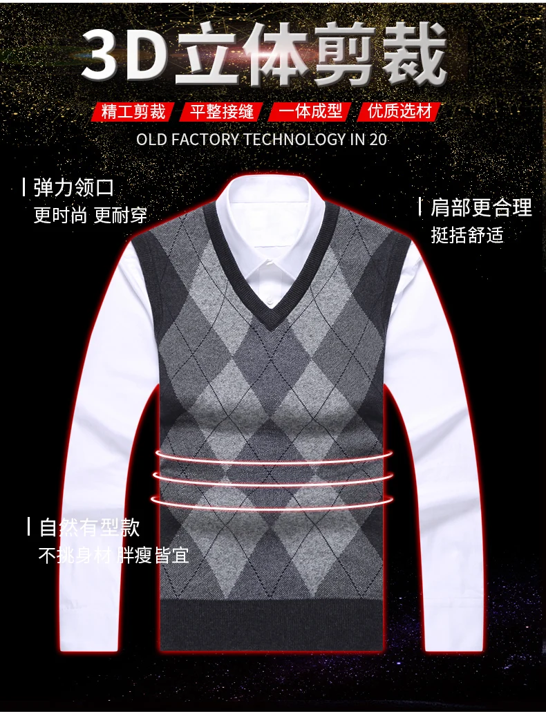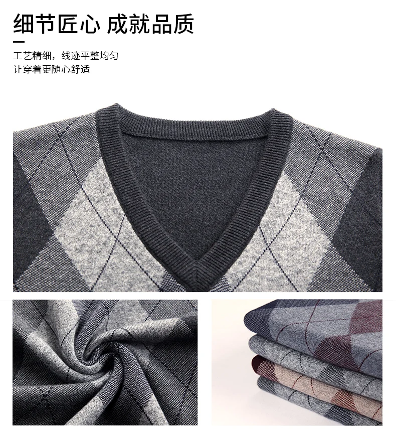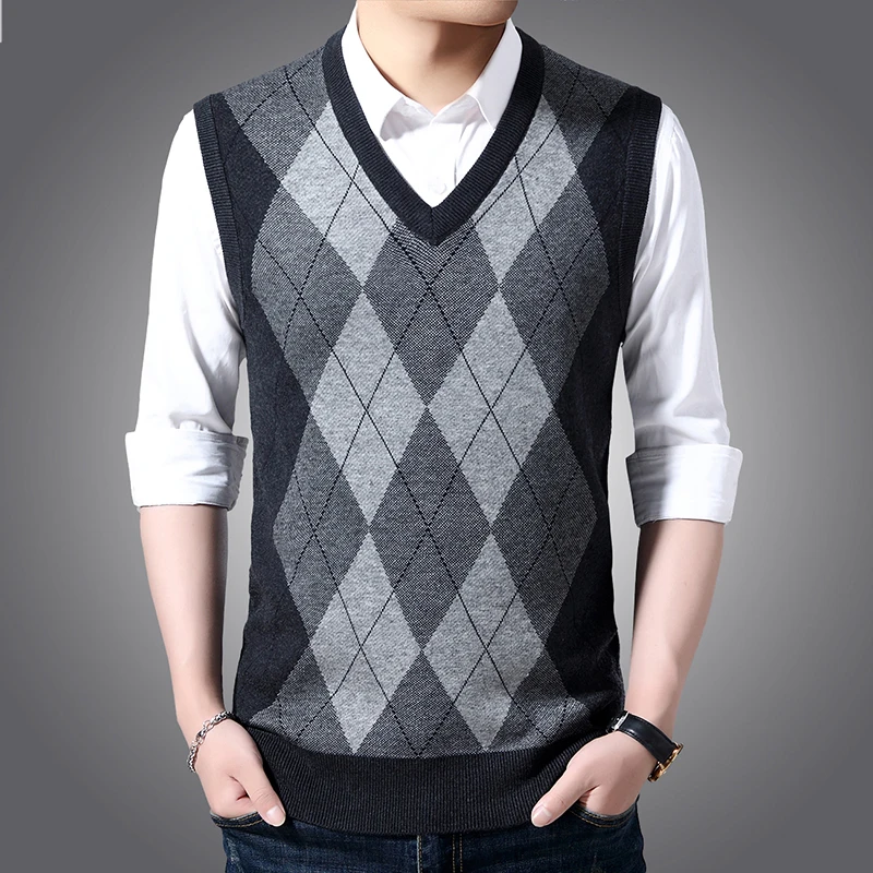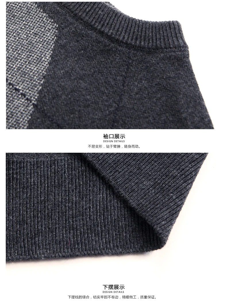 Мужской утепленный шерстяной свитер, модный клетчатый теплый кашемировый жилет, мужской джемпер без рукавов с узором ромбиками, пуловеры
