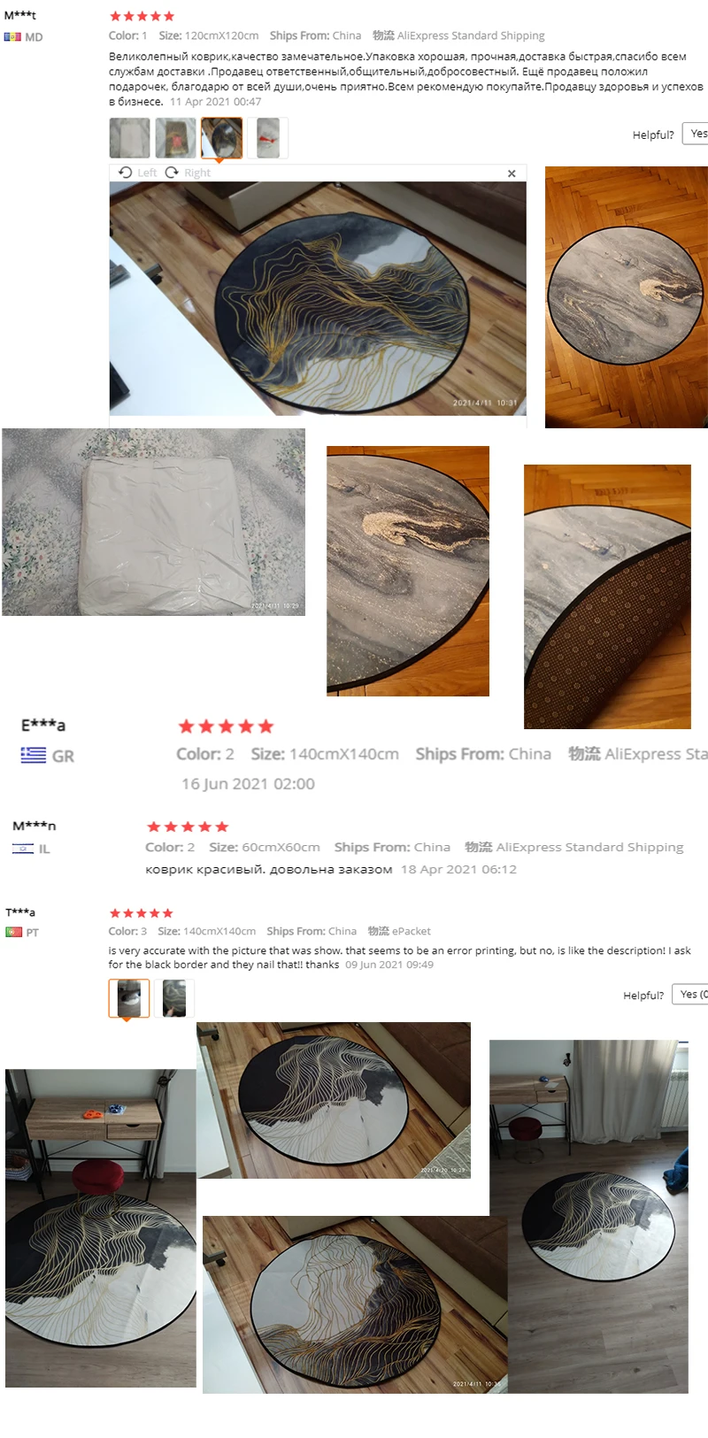В: есть ли реальные фотографии?О: Да, если нам это нужно, мы можем предоставить.В: Можно ли сложить ковер?О: ковер сложен и упакован. Могут быть складки после получения, но, пожалуйста, не волнуйтесь, откройте посылка и разложите ковер. Поместите тяжелый предмет на складку. Если это возможно, используйте железо для глажки очевидной складки.В: если вам это не нравится, как вернуть товар?О: мы вернем покупателям деньги, если покупатели возвращают товары в течение 15 дней с момента получения покупателями товаров по любой причине. Тем не менее, покупатели должны нести стоимость обратной доставки и убедиться, что возвращенные товары находятся в их первоначальном состоянии.В: как чистить ковер?О: небольшие ковры можно стирать в стиральной машине или стирать вручную. Большие ковры рекомендуется чистить с помощью пылесосаВопрос: Что делать, если вы хотите большой ковер?О: пожалуйста, свяжитесь с нашей службой поддержки клиентов напрямуюВ: какая логистика используется для доставки?О: товары отправляются стандартной доставкой AliExpress, авиапочтой Китая, Премиум доставкой AliExpress, ePacket, доставляются в большинство стран в течение 15-35 рабочих дней. Время доставки зависит от пункта назначения и других факторов, это может занять до 60 рабочих дней.Если вы хотите получить товар быстрее, пожалуйста, свяжитесь с нами, чтобы оплатить дополнительные перевозки, мы можем предложить вам следующие более быстрые и дешевые способы доставки: UPS , DHL , Fedex , TNT , DEPX , EMS. С помощью этих способов вы можете получить товар в течение 5-7 рабочих дней.