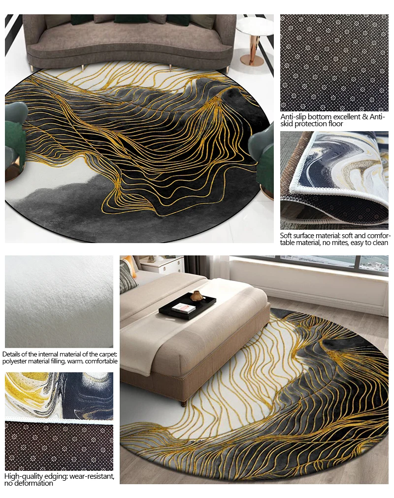 Круглый ковер Bubble Kiss, модный роскошные ковры коврик с золотым ковер с линиями для гостиной, дома, журнального столика, украшение для спальни