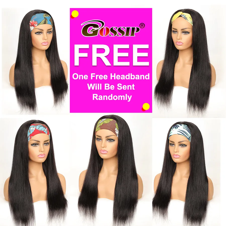 Сплетнистый прямой парик с головной повязкой Glueless человеческие волосы парики для черных женщин бразильский доступный шарф парик с головной повязкой для начинающих