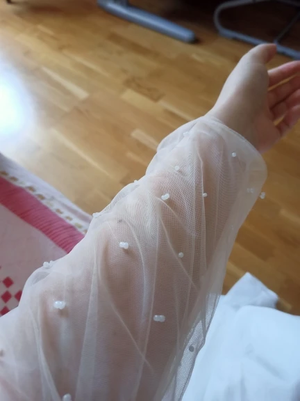 Платье красивое, но некоторые моменты подвели. Во-первых, по скольку выбрала пользовательские размеры, платье шло больше 40 дней. Во-вторых прозрачный рукав оказался двойным, как и бисер, выглядит некрасиво (о том, что рукава придется ушивать, и говорить не стоит). В-третьих я отправила свои размеры, не потолстев, до конца платье не застегнулось. Нитки на груди порвались. Одни расстройства перед свадьбой:(