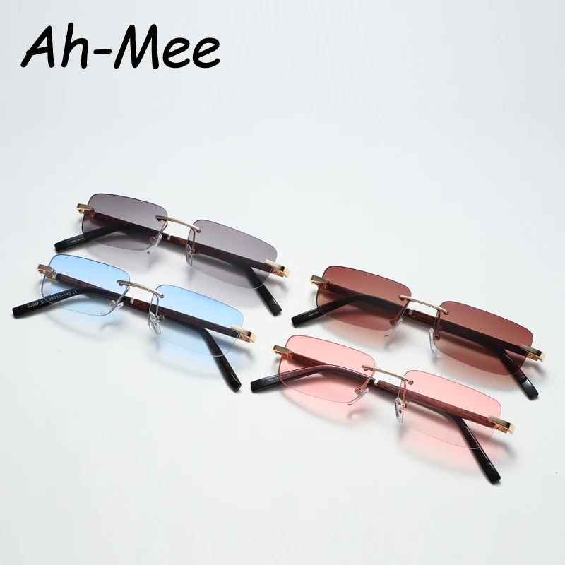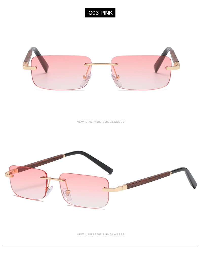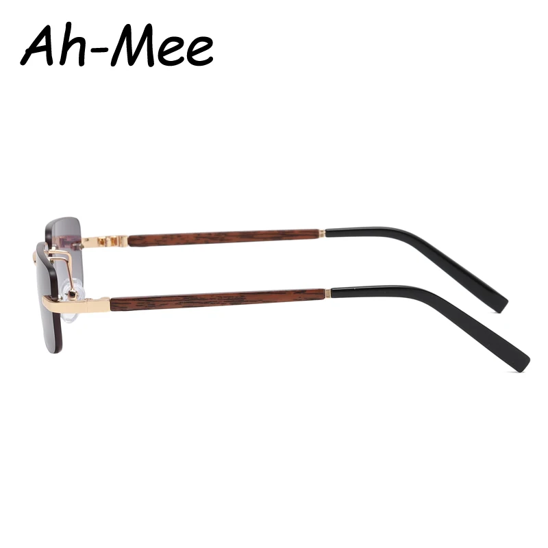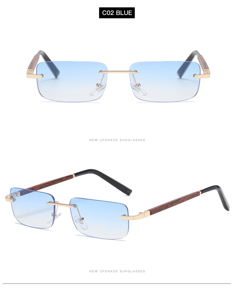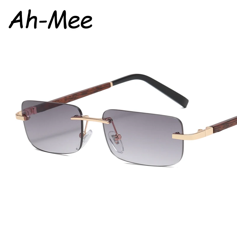 Солнцезащитные очки без оправы UV400 для мужчин и женщин, винтажные прямоугольные солнечные аксессуары без оправы, с градиентом, с деревянными дужками