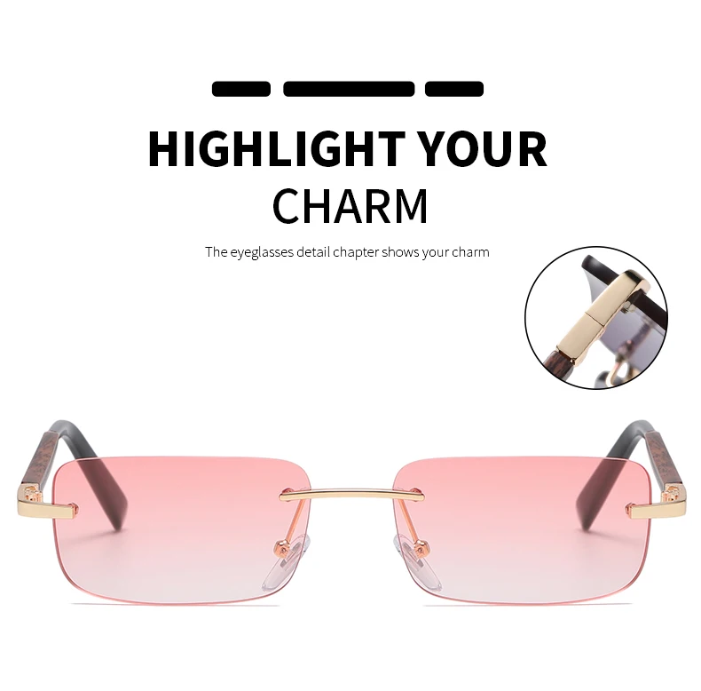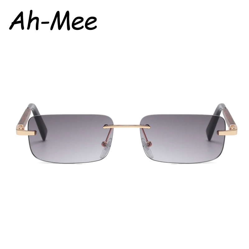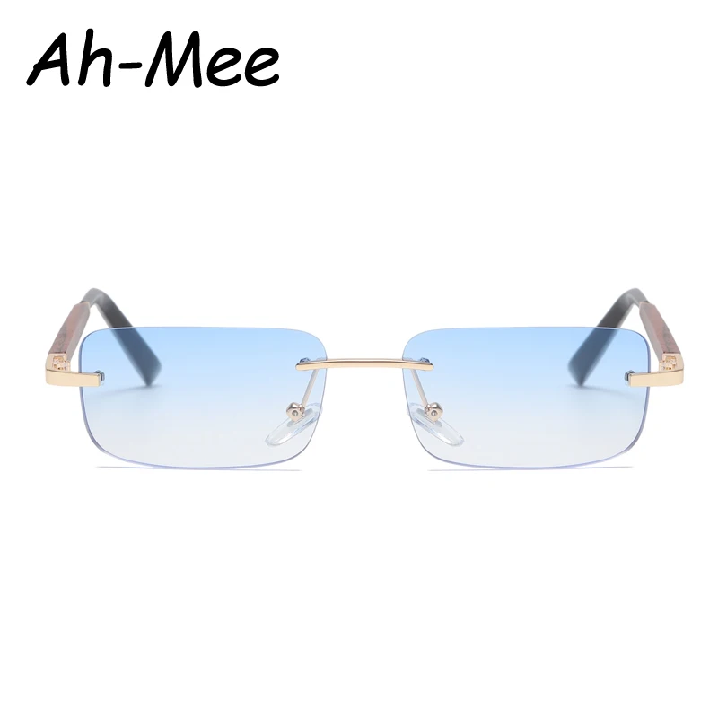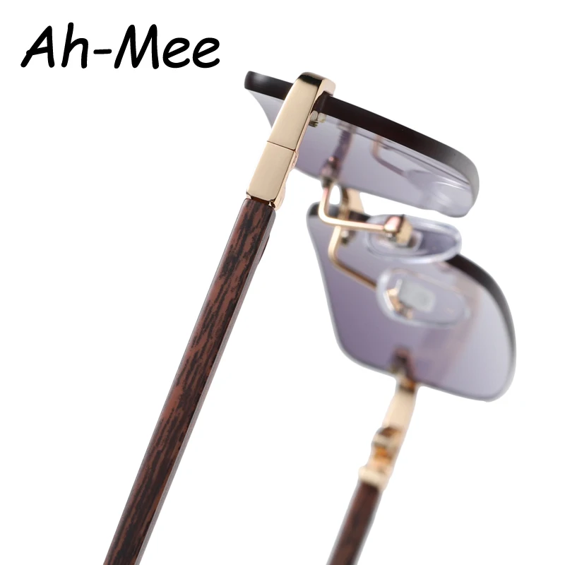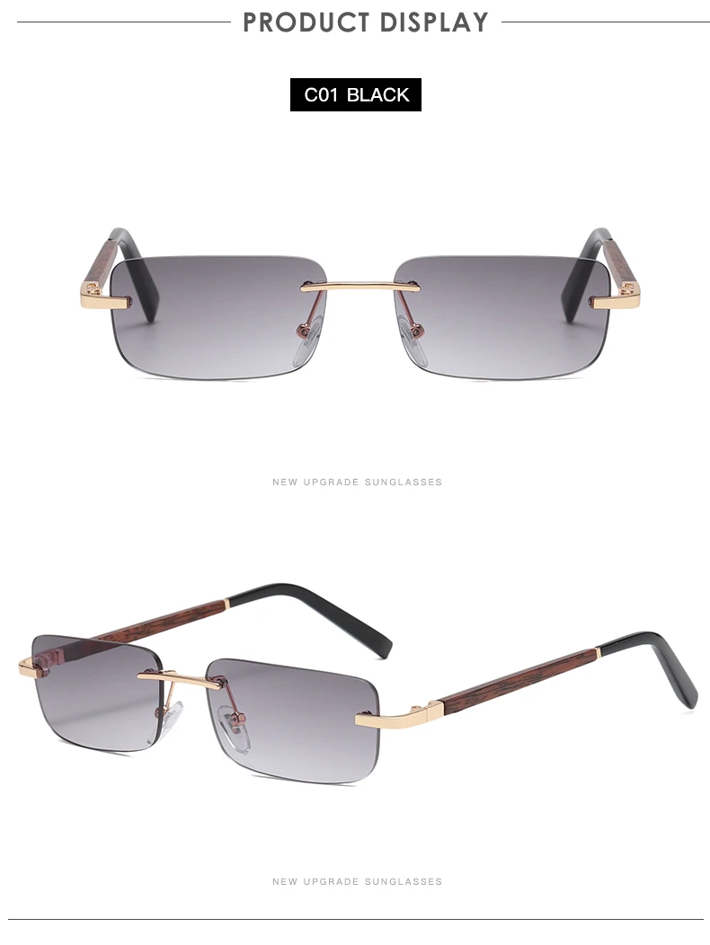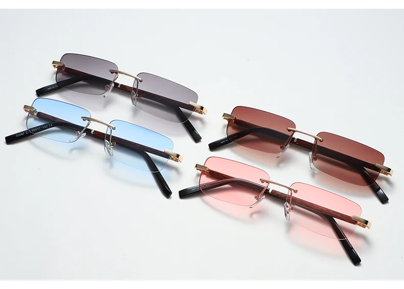 Солнцезащитные очки без оправы UV400 для мужчин и женщин, винтажные прямоугольные солнечные аксессуары без оправы, с градиентом, с деревянными дужками