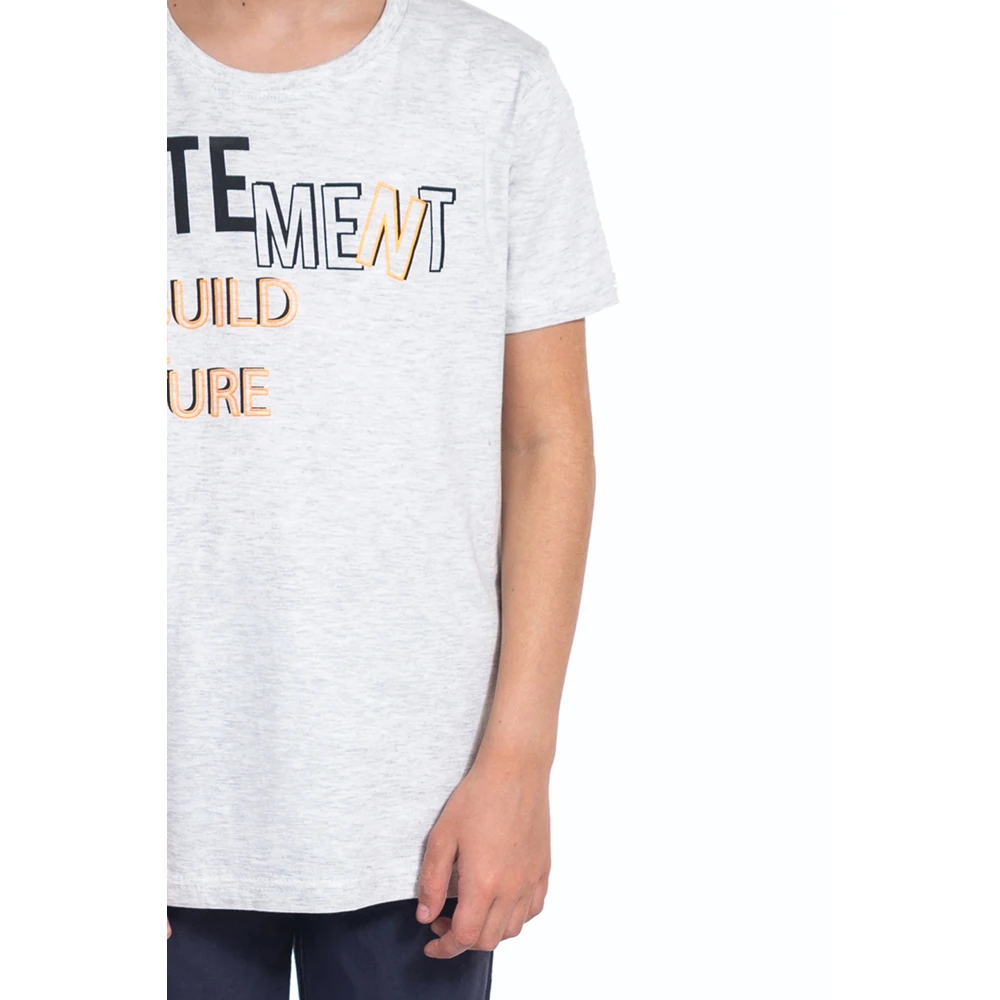 Производитель: Россия. Коллекция: ВЕСНА-ЛЕТО 2019. ~ Лаконичный серый оттенок, крупный текстовый принт и неоновые детали - эта футболка точно понравится вашему юному герою. Модель изготовлена из хлопкового трикотажа - комфортного в ношении, дышащего и гипоаллергенного материала. Носить такую во время прогулок и активных игр - одно удовольствие!.