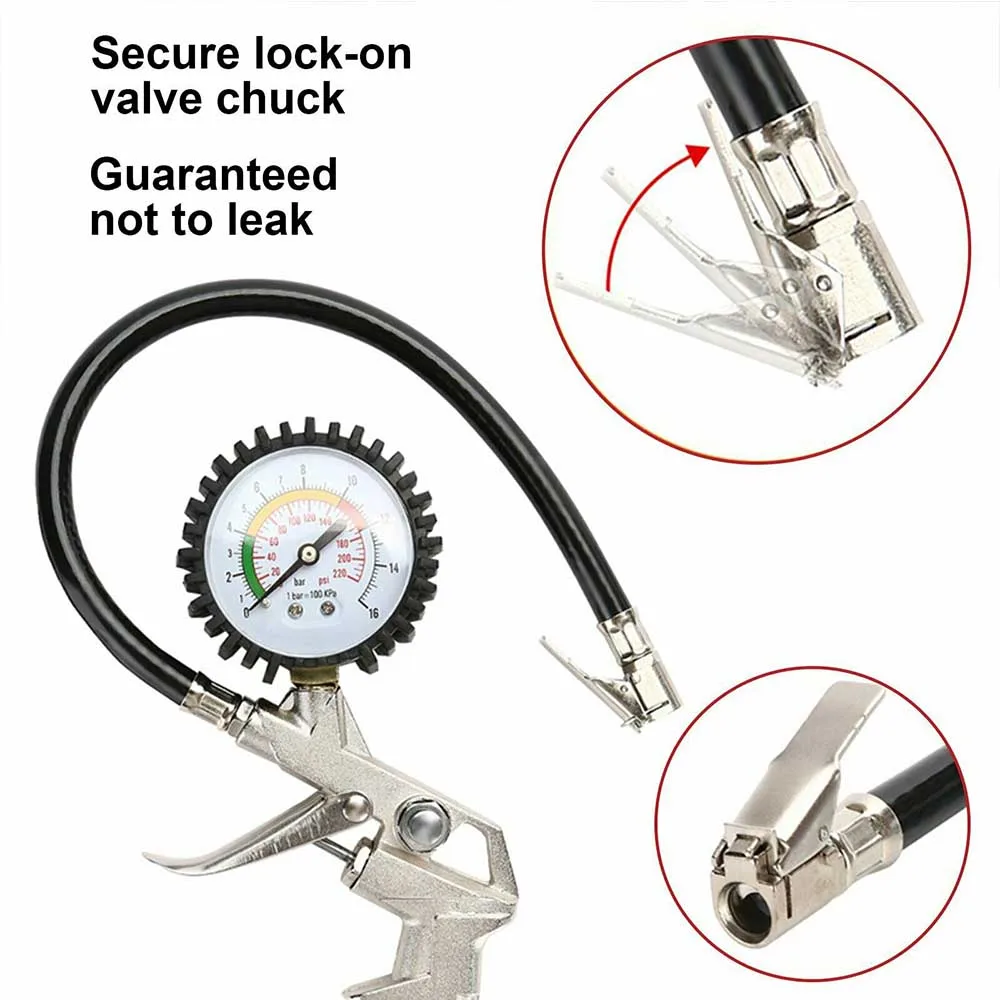 Насос для шин, манометр для воздушных шин с манометром для автомобиля, фургона, пистолета, тестер давления, воздушный компрессор, 0-220psi