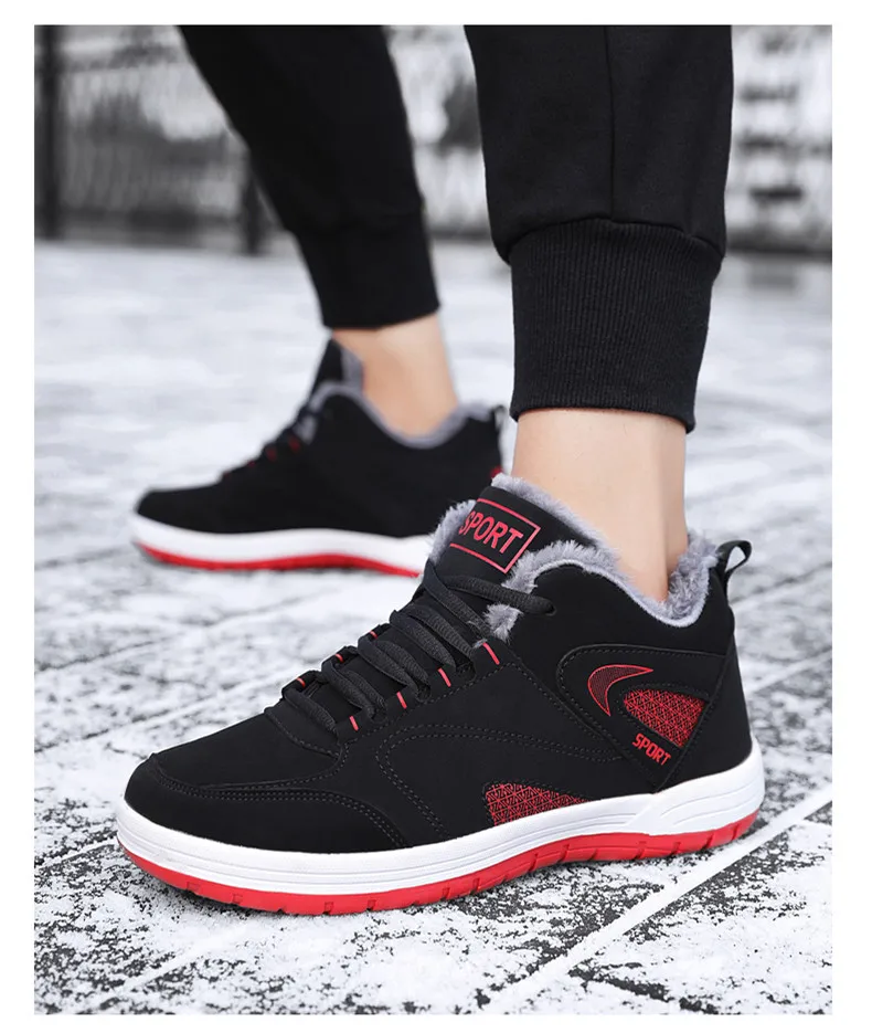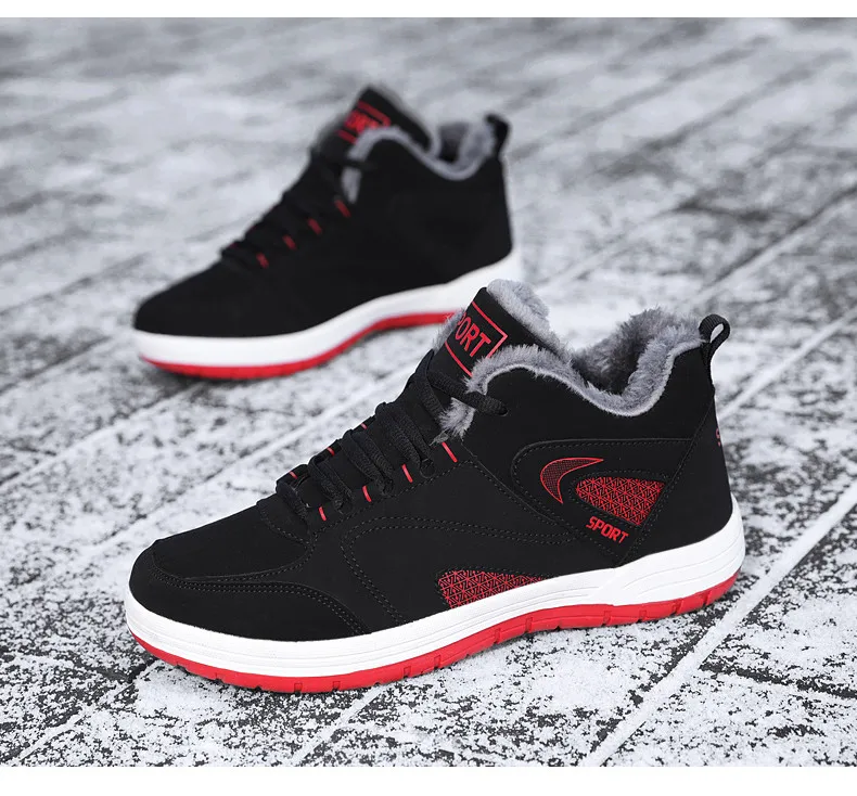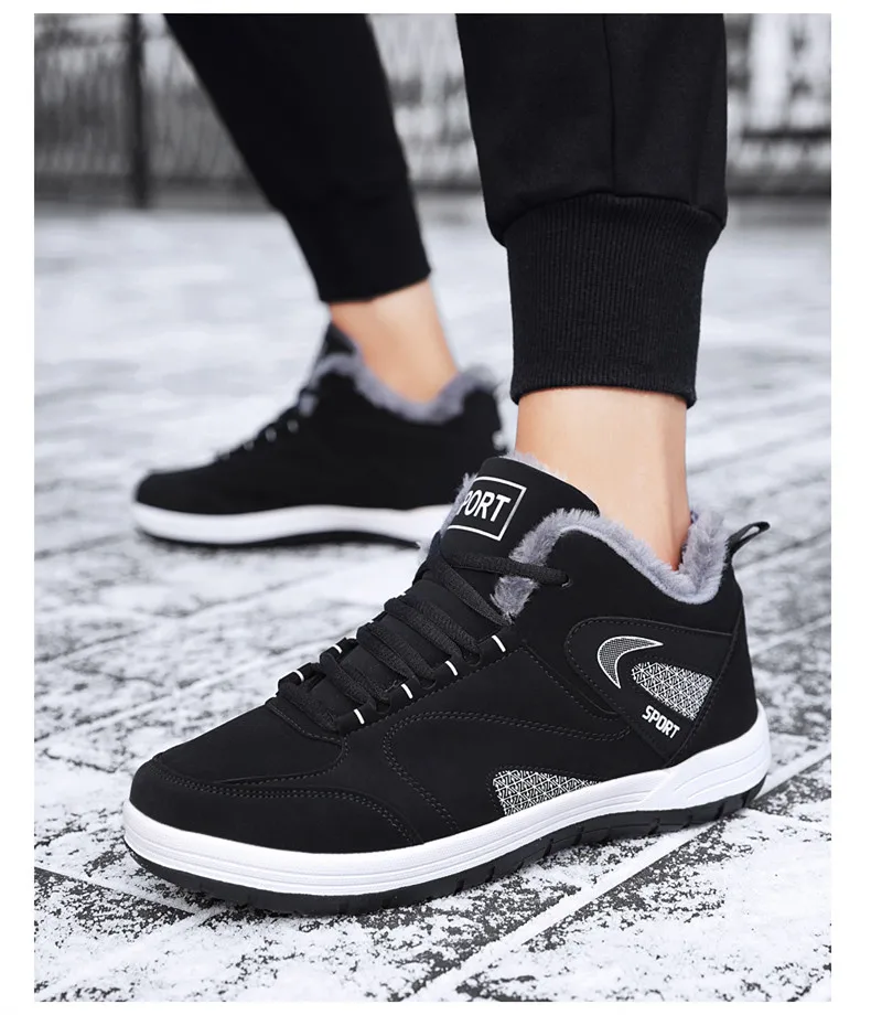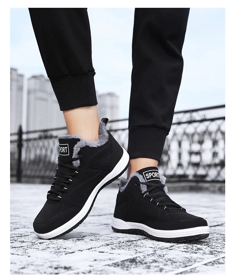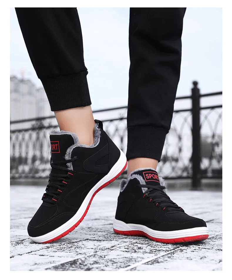 Мужские зимние кроссовки с плюшем, теплая Повседневная обувь, водонепроницаемые зимние ботинки, обувь для мужчин, на шнуровке, Нескользящие мужские кроссовки fleтитр