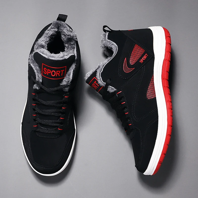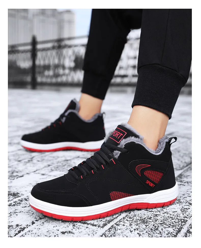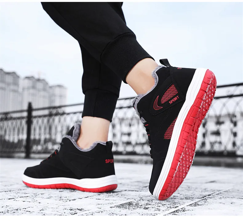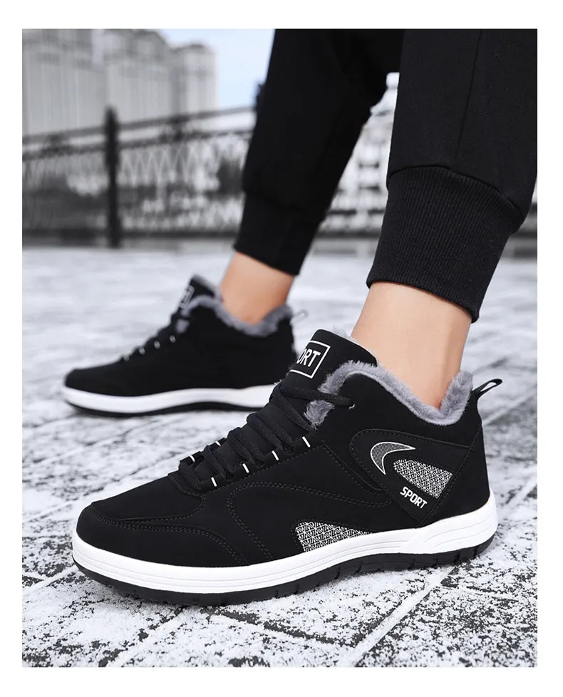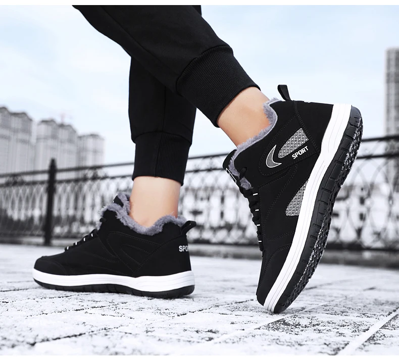 Мужские зимние кроссовки с плюшем, теплая Повседневная обувь, водонепроницаемые зимние ботинки, обувь для мужчин, на шнуровке, Нескользящие мужские кроссовки fleтитр