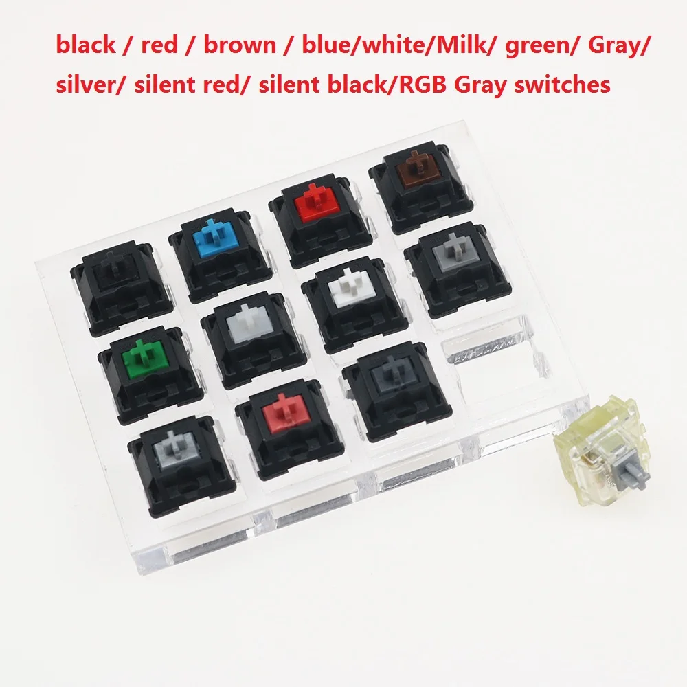 Механическая клавиатура, тестер переключателей Cherry MX, 3 контакта, черный, красный, коричневый, синий, зеленый, молочный, белый, бесшумный, красный, 9, 12 клавиш, полупрозрачный колпачок