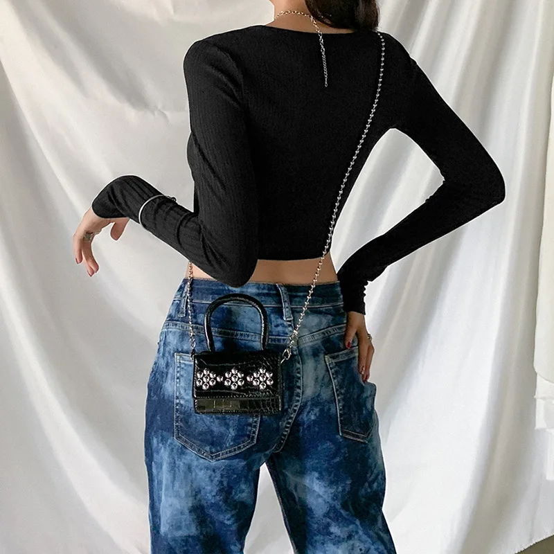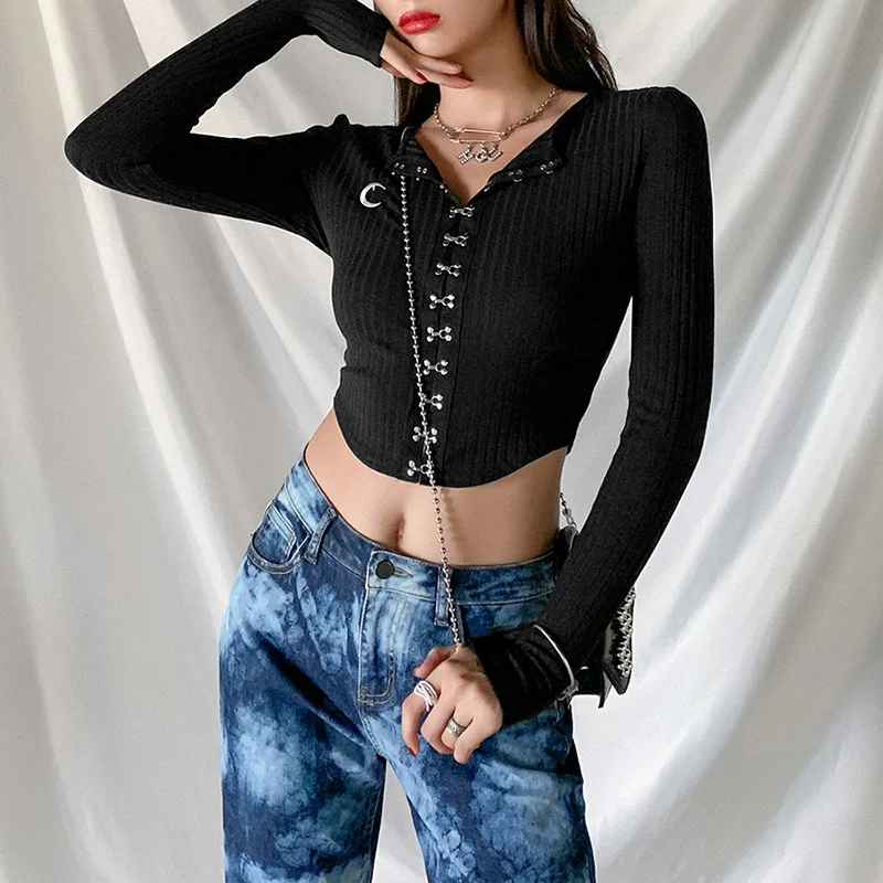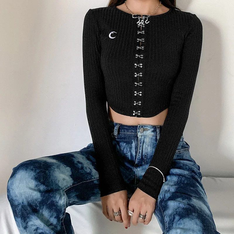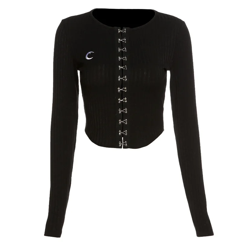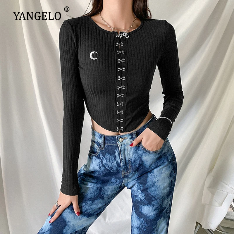 Женский свитер Yangelo, однотонный кардиган с вышивкой в виде Луны, с длинным рукавом, на одной пуговице, Осень-зима, короткие сексуальные топы