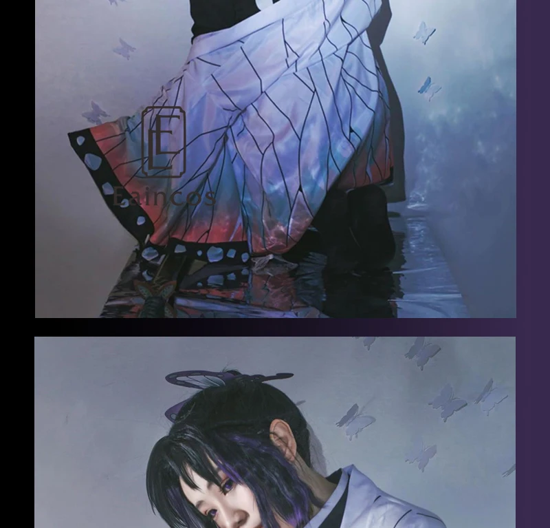 Костюм для косплея аниме Demon Slayer Kimetsu no Yaiba Kochou Shinobu, женское кимоно, парик для вечевечерние на Хэллоуин