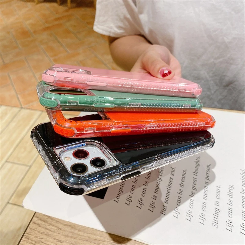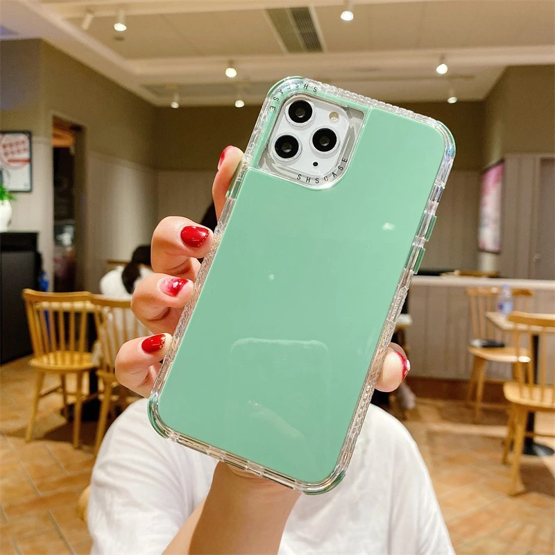 3 в 1 ударопрочный флуоресцентный однотонный мягкий чехол для телефона iphone 12 Mini 11 pro max XR XS MAX 7 8 6S PLUS силиконовый чехол