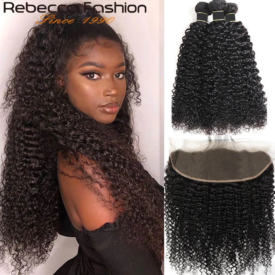 Пупряди кудрявых волос Rebecca с фронтальными кудрявыми натуральными волосами, 3 пучка с застежкой, бразильские волосы, волнистые пучки с застежкой