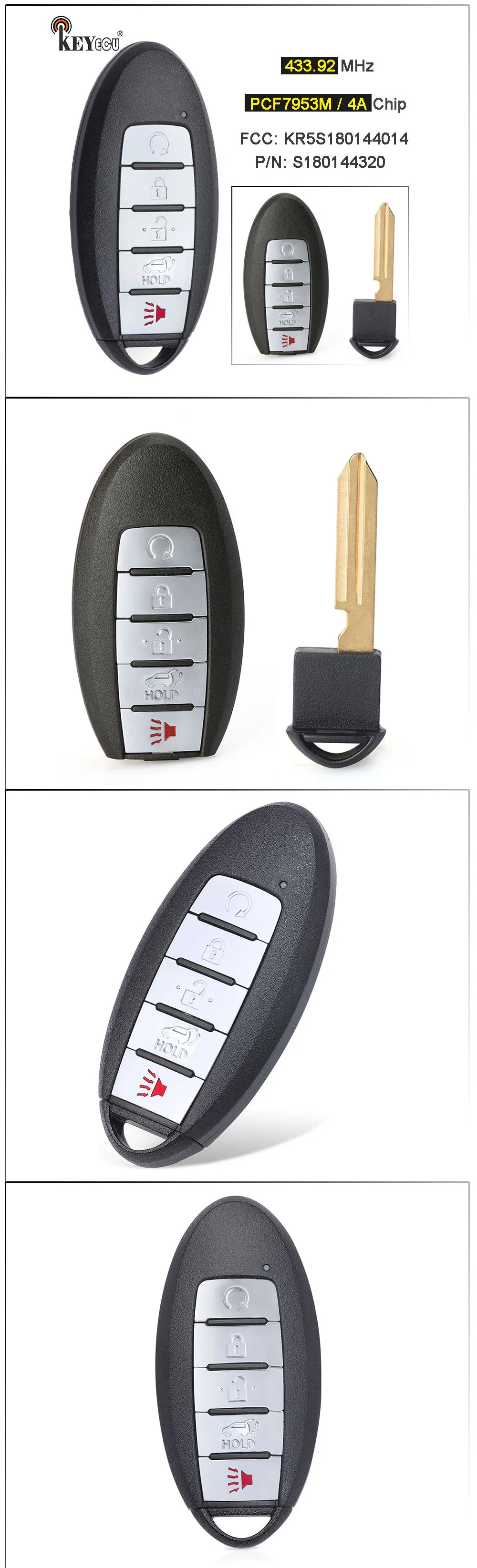KEYECU 433,92 МГц PCF7953M 4A чип KR5S180144014, S180144320 Keykess-Go дистанционный брелок 3 + 1 4 кнопки для Infiniti QX60 2016-2018