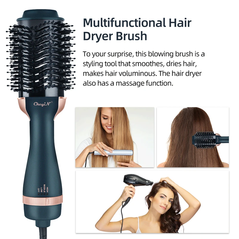 1,2 скорость и 3 настройки тепла.2. Две сменные кисти и номинальная мощность 1000 Вт позволяют быстро высушить волосы и легко стилизовать волосы одновременно.3. С функцией вращения, может вращаться на 360 ° по часовой стрелке и против часовой стрелки, позволяет легко высушить волосы.4. Многофункциональная щетка для сушки волос, подходит для сушки, завивки различных стилей волос.