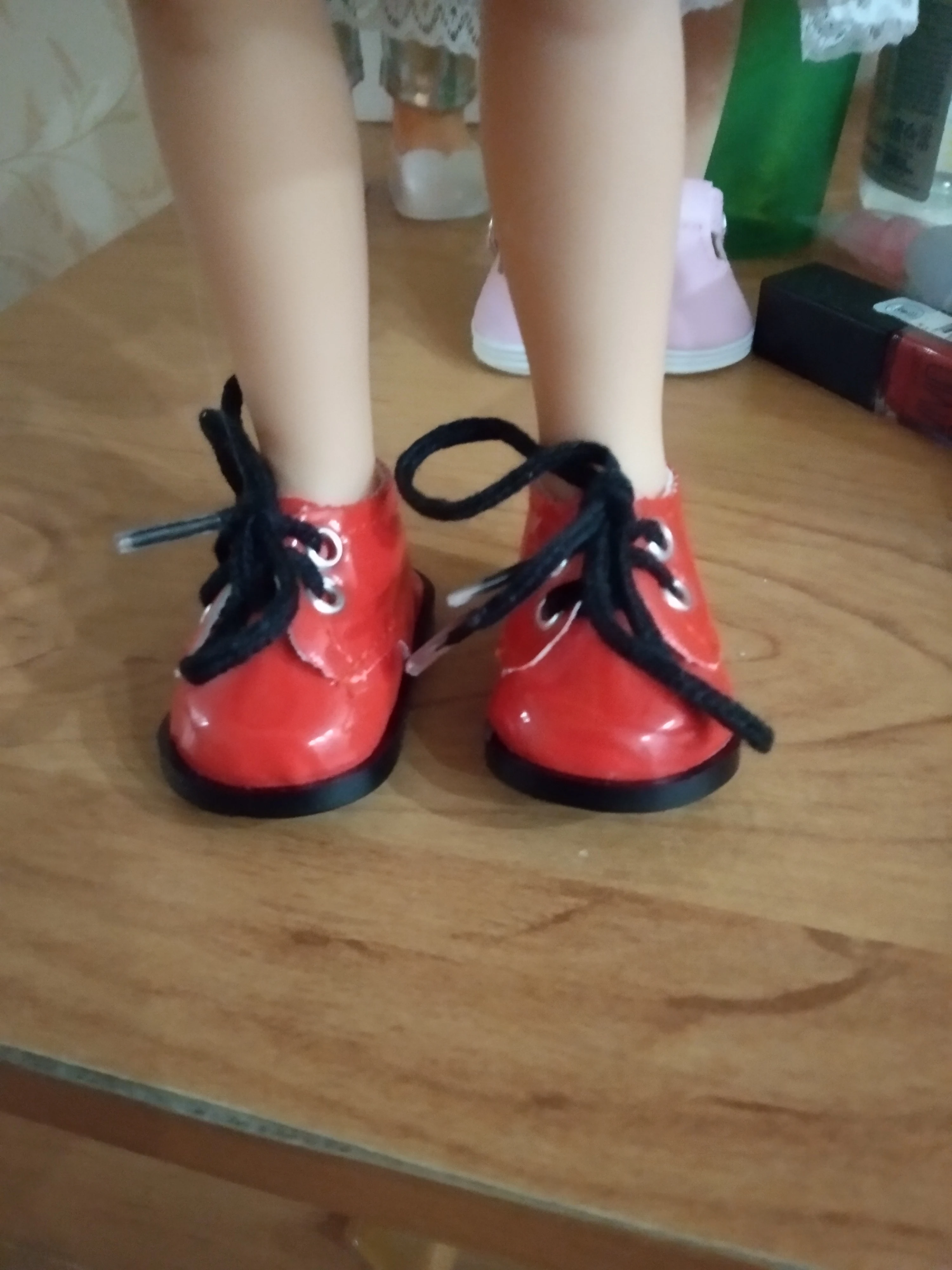 хорошие башмачки и недорого ...на паолочку впритых одеваются ,на испанскую куколку Арина Огонёк хорошо одеваются..шнурки только смешные -огромные ,можно сменить .А так башмачки понравились ,значит ещё закажу других цветов .Спасибо!!!!
