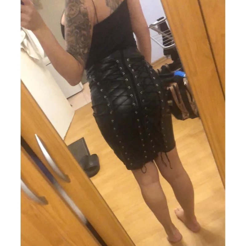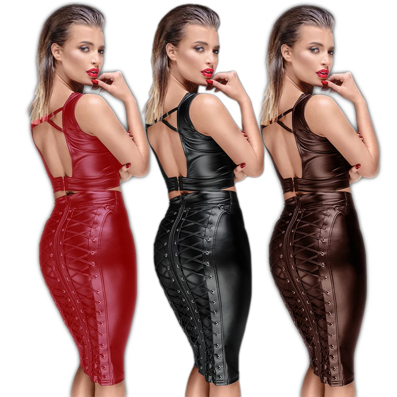 Гот юбки в стиле панк-карандаш с завышенной талией по колено Zopper черный размера плюс юбка для женщин кожаные модельные туфли женские пикантные туфли со шнуровкой; Ботинки из ПУ-кожи