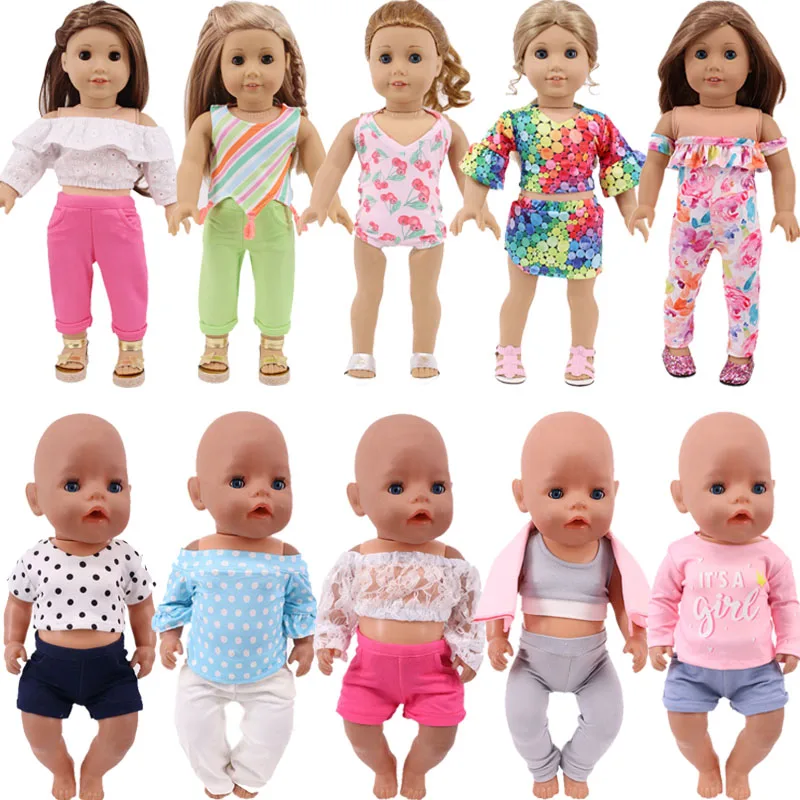 Осенние цветные костюмы с футболкой, подходит для девочек 18 дюймов и 43 см, Одежда для кукол Реборн, наше поколение, лучший подарок для детей