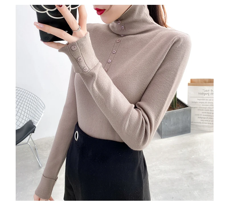Осень-зима 2020, женская одежда, Новый кашемировый свитер, Женский вязаный свитер, Модный женский свободный свитер с высоким воротником, пуловер
