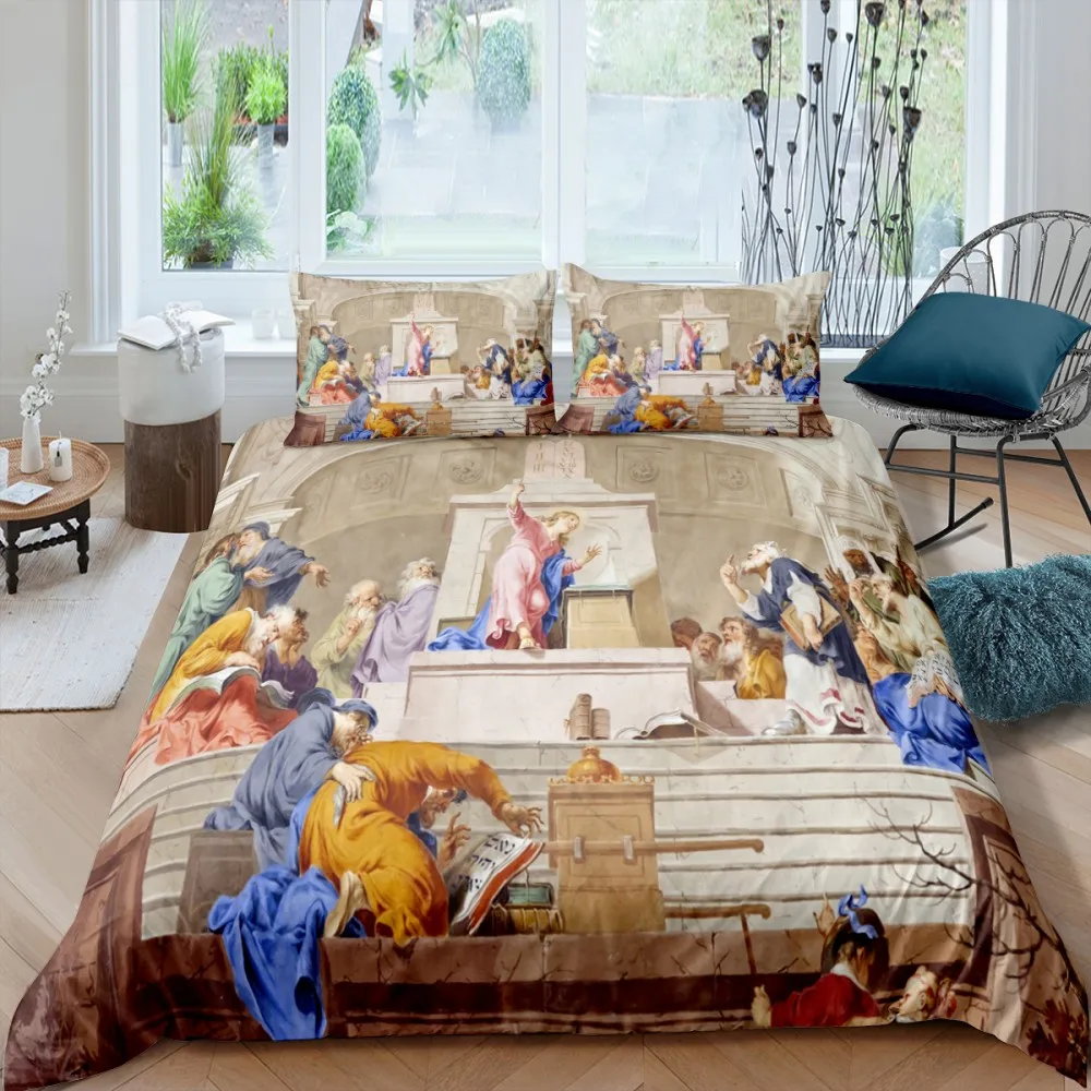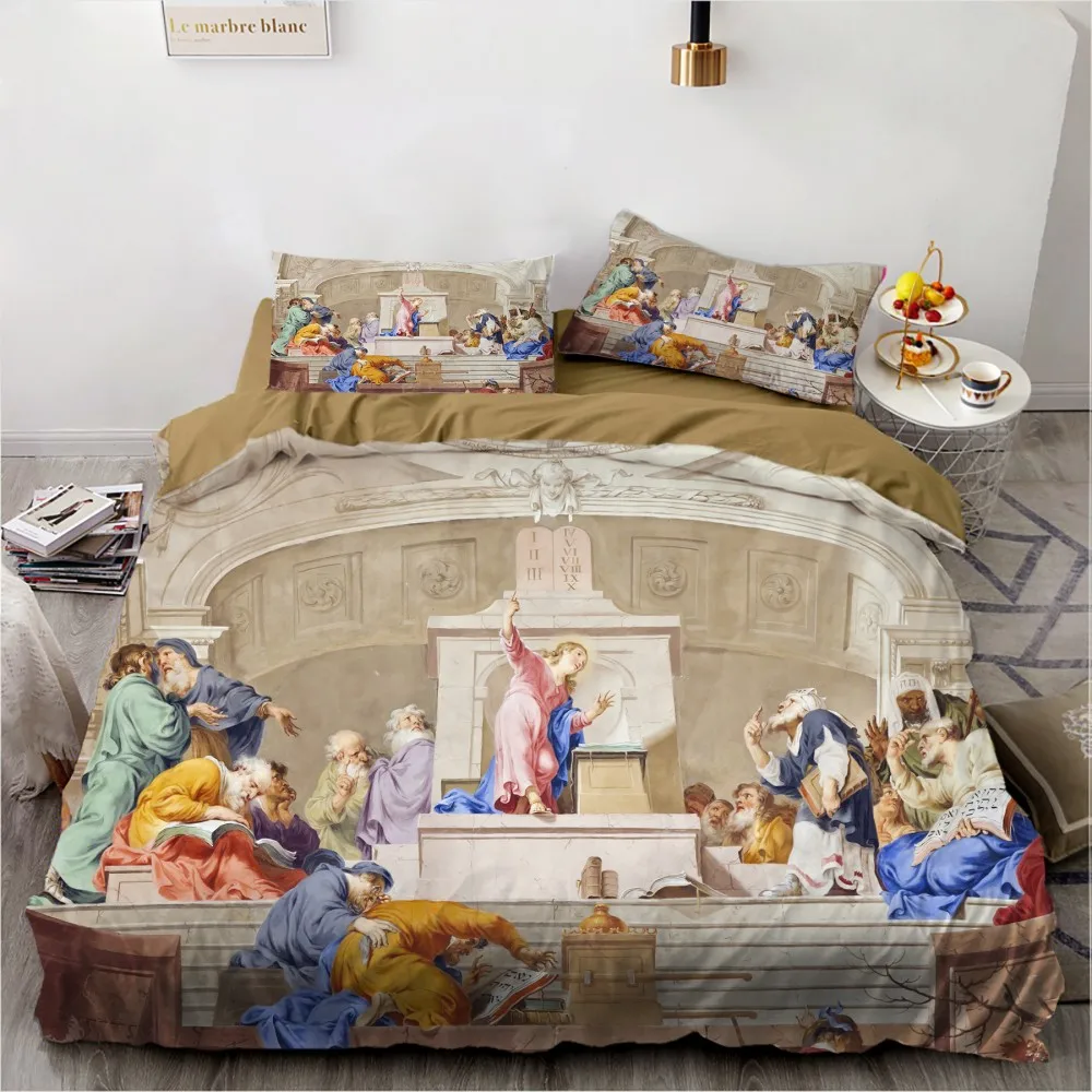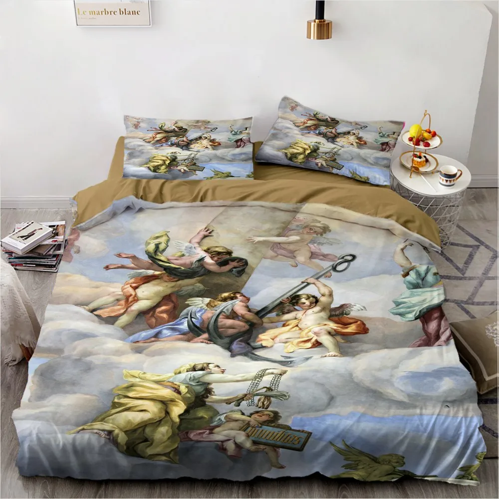 Комплект постельного белья в европейском стиле, 23 шт., пододеяльник с 3D принтом ангела, масляной живописи, пододеяльник, наволочка, без простыней