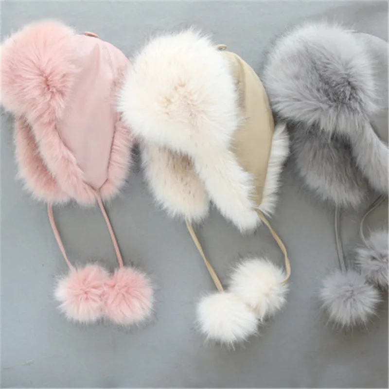 Женская модная зимняя детская шапка из искусственной кожи с большим помпоном меховая плюшевая ветрозащитная шапка ушанка для детей мальчиков и девочек Теплая Лыжная шапка