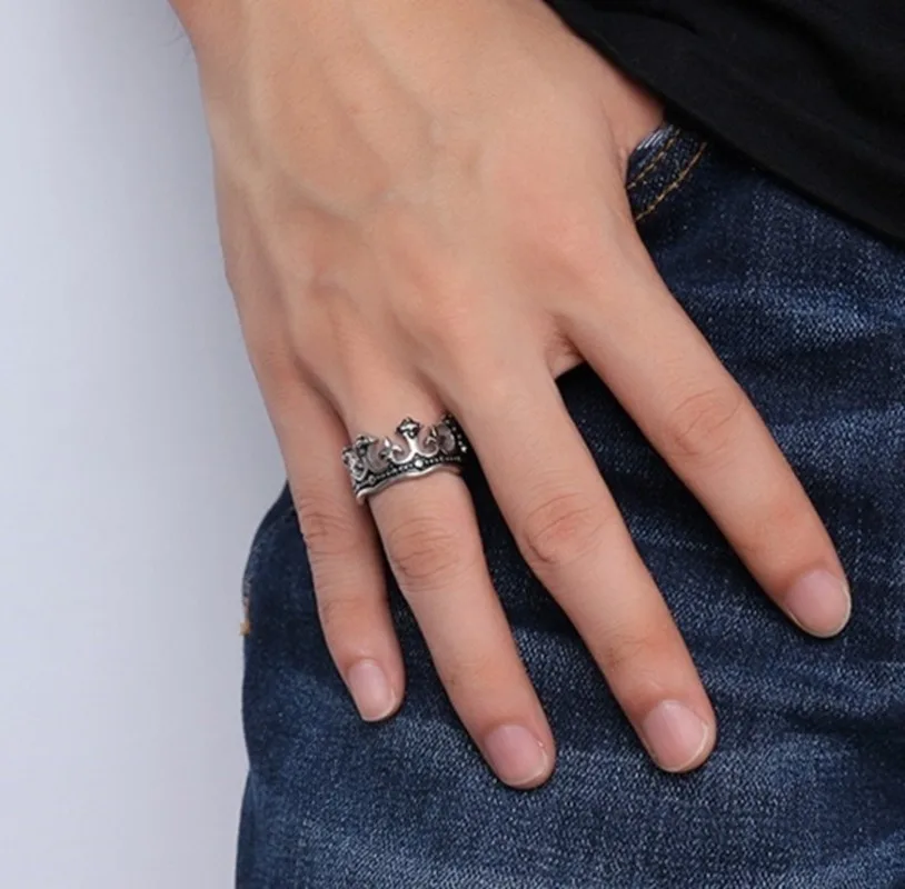 Мужские Винтажные черные Королевская корона высококачественные металлические кольца