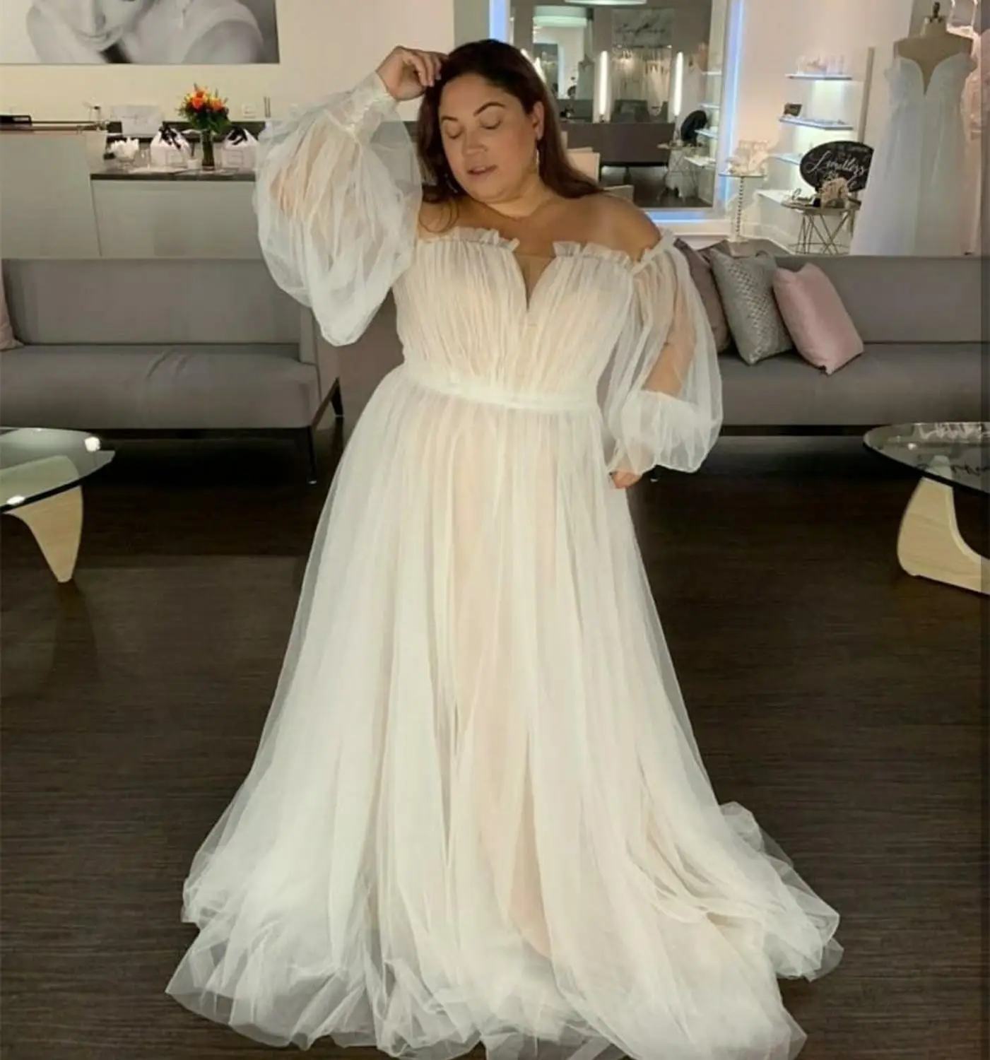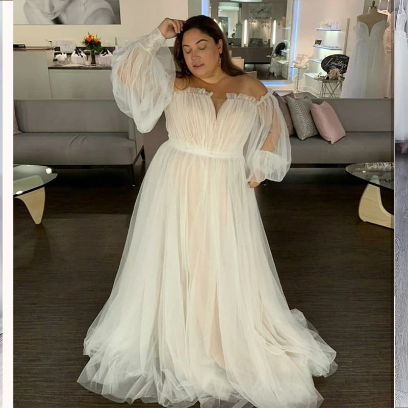 Размера плюс свадебное платье со шлейфом, с длинным рукавом, с пышной юбкой, в пол, большие размеры