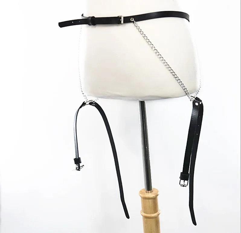 Ремень женский в готическом стиле, Эротическая портупея для бондажа, подвязка на бедро в стиле панк, пикантное нижнее белье, пояс с цепочкой, БДСМ, Эротическая портупея для ног