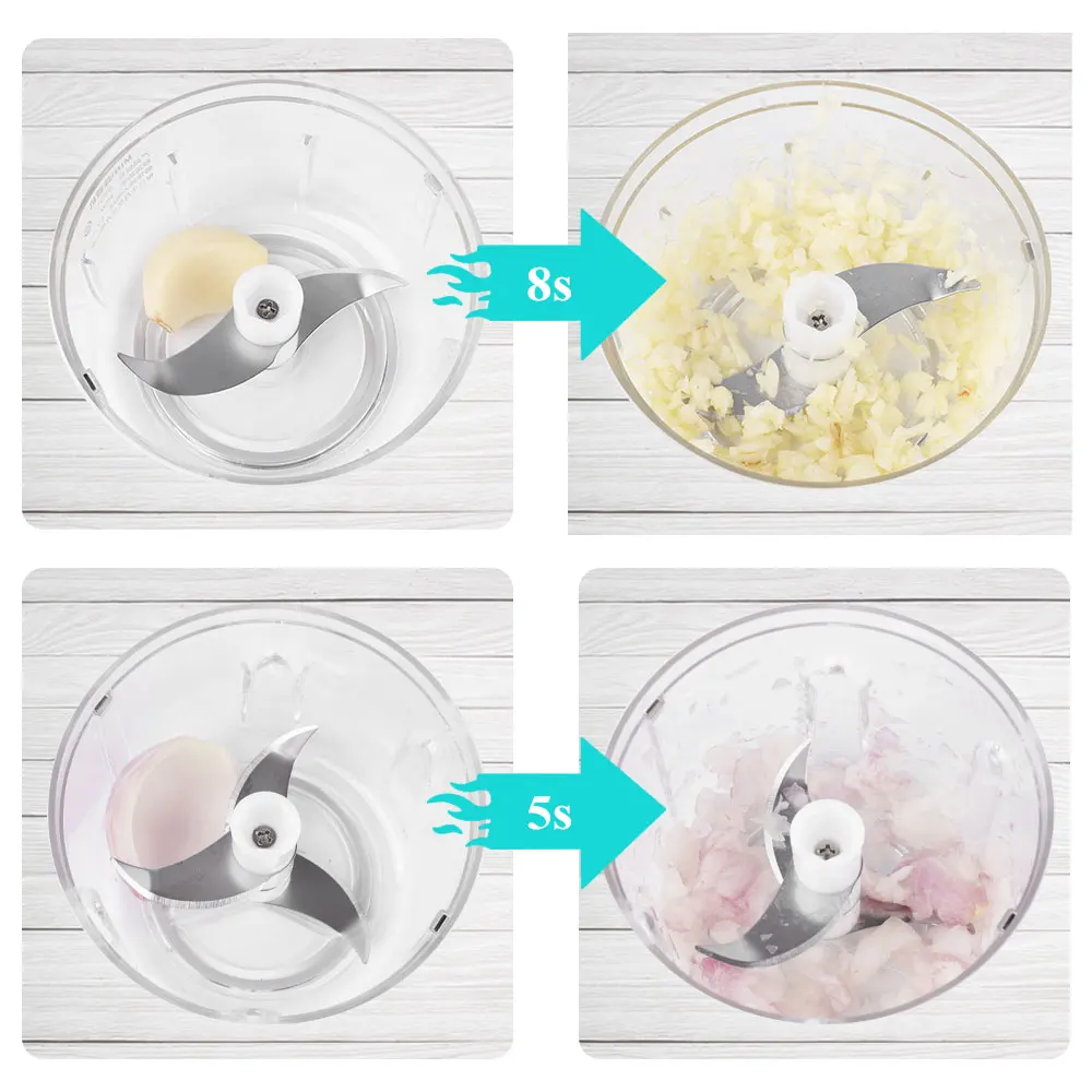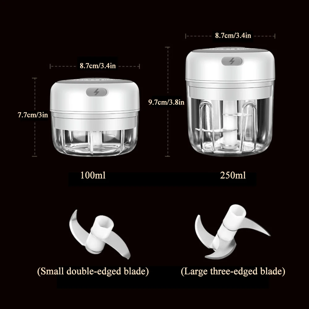 1. Простое управление, нужно только нажать кнопку сверху, чтобы автоматически нарезать еду для вас, удобно и практично.2. Изготовлен из высококачественной нержавеющей стали 304, экологически чистый АБС-материал, дно силикагеля не скользит, устойчив к коррозии, устойчив к высоким температурам, может безопасно содержать продукты питания, устойчив к падению.3. Кухонный комбайн емкостью 100/250 мл, маленький и изысканный, маленький по размеру и легко хранить.4. Используется для зарядки через usb, используется для длительного времени, легко носить с собой, очень подходит для семьи, кемпинга, пикника, путешествий.5. Легко моется, корпус чашки и крышка измельчителя пищи отстегиваются. После измельчения пищи, вы можете удалить лезвие и непосредственно краску лезвия и чашки с водой.6. Три функции высокой безопасности, безопасный, чашка должна быть выровнена с положением фюзеляжа, и поворачивается в безопасное положение замка, чтобы начать для безопасного использования.ПараметрыМатериал: АБС + нержавеющая стальМаленький размер: 7,5х8, 7 смБольшой размер: 8,7x9,7 смЕмкость: 100/250 млМощность: 30 ВтНапряжение: DC5VИсточник питания: Встроенный аккумулятор 1200 мАчВремя зарядки: 3 часаЛезвие для перемешивания: двойное лезвие для перемешивания/три лезвия для перемешиванияПосылка включает в себя1 х дробилка для чеснока1 х USB кабель