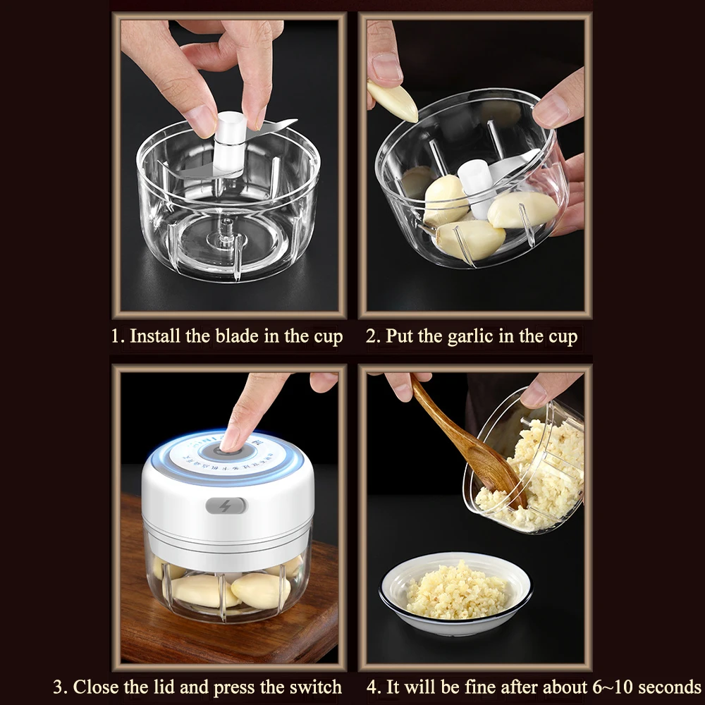 Электрическая чеснока давилка, прочная тонкая чеснока, USB зарядка для измельченного чеснока, измельченного имбиря, измельченного свежего Чили