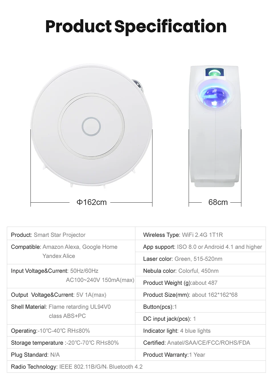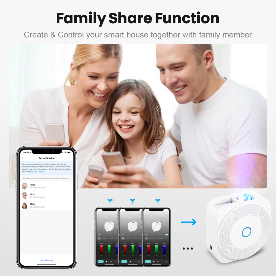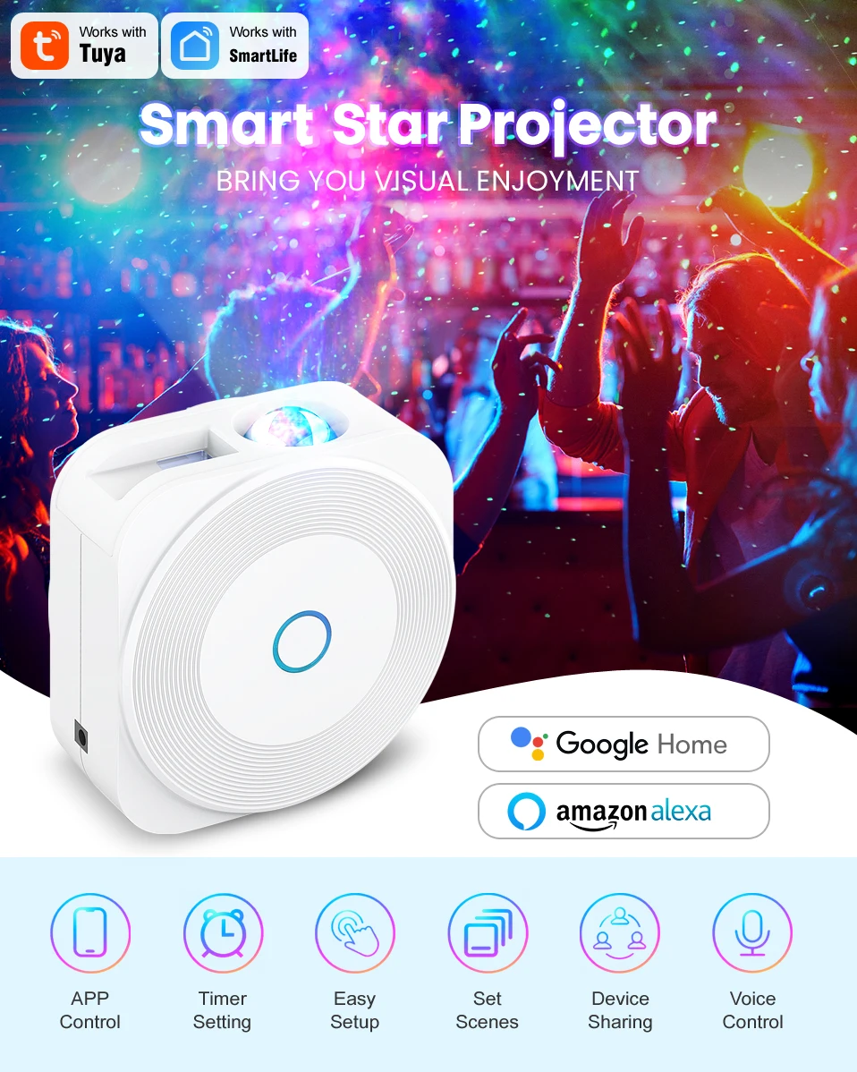 Проектор звездный AVATTO Tuya, Wi-Fi, проектор звездной звезды, музыкальный прожексветильник для вечевечерние, проектор умный дом для Google Home, Alexa