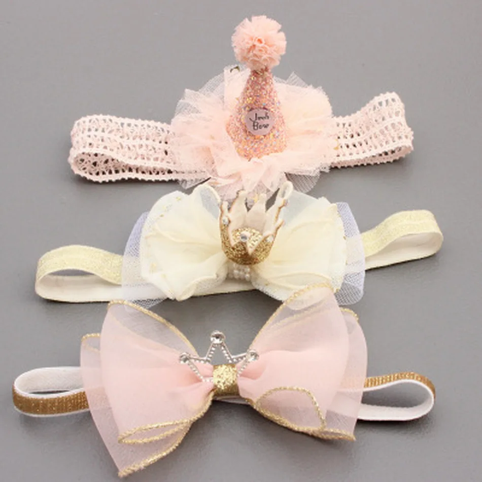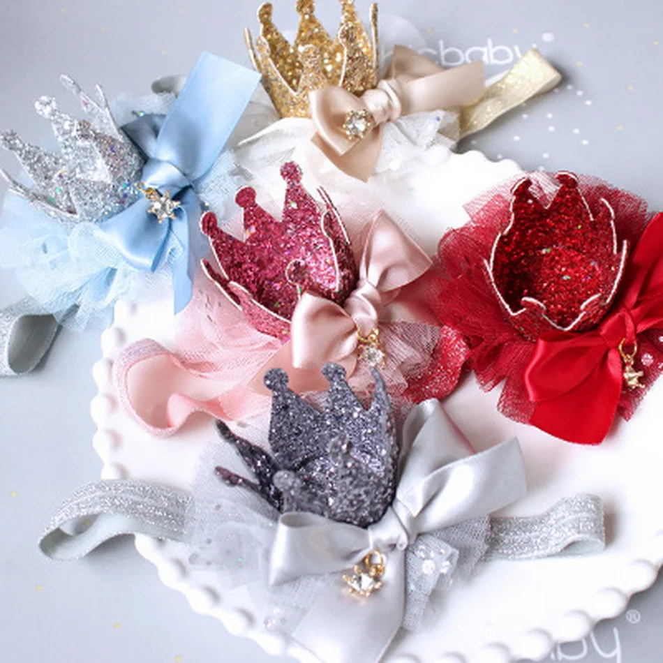 Милые повязки для детей с изображением корона и тюрбана, бантики для девочек розовые шарф для волос кружевные бант повязки на голову для девочки Детские вечерние ободок чалма детская аксессуар подарок