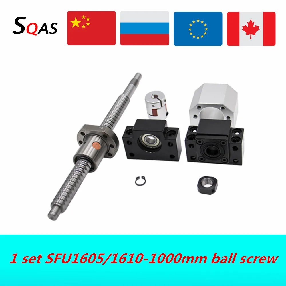 Комплект шариковых винтов для склада в ЕС SFU1605 1000 мм, шариковый винт с обработкой BK12 BF12 + Одиночная гайка + держатель гайки + муфта для детали ЧПУ