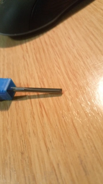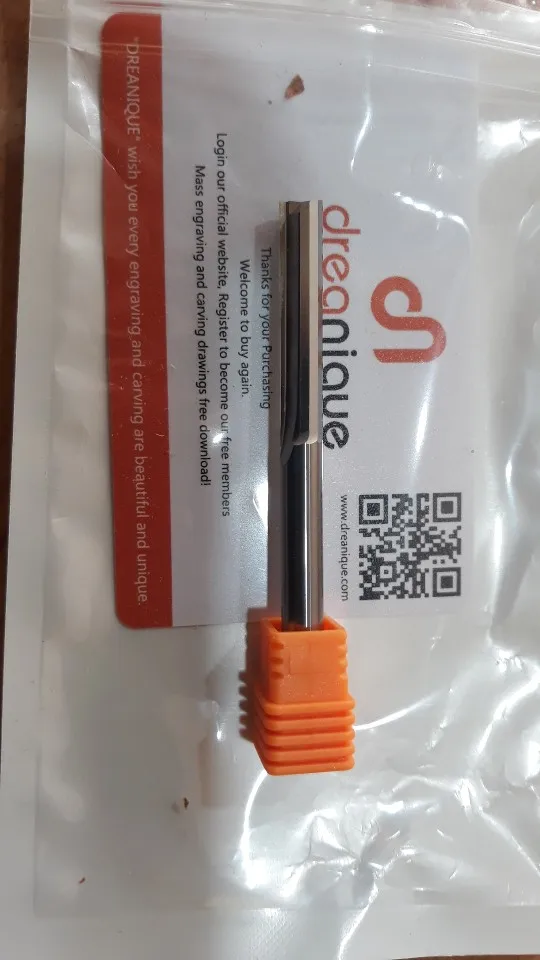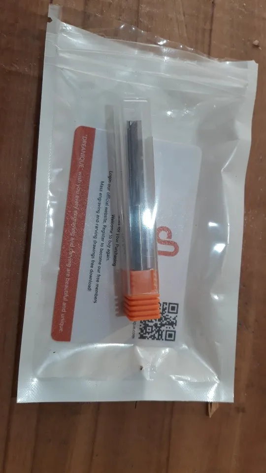 Выиграл за менеты, прислали очень быстро, 1.5 недели, заточка у фрезы двухзаходная, прямая с канавкой. Ноготь режет, значит и для дерева подойдёт.