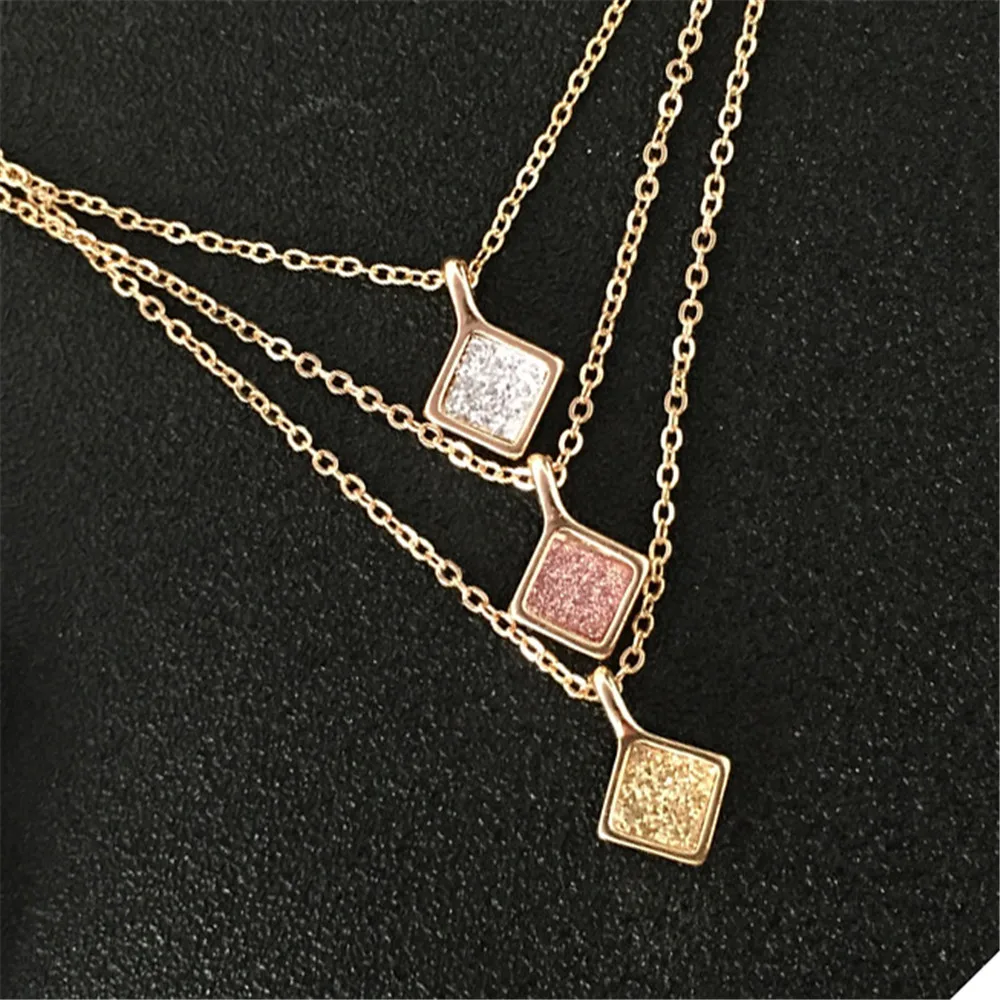 Новинка милое ожерелье 3 Блестящий квадратный кулон в 1 многослойное ожерелье с застежкой-карабином для подруги лучший подарок
