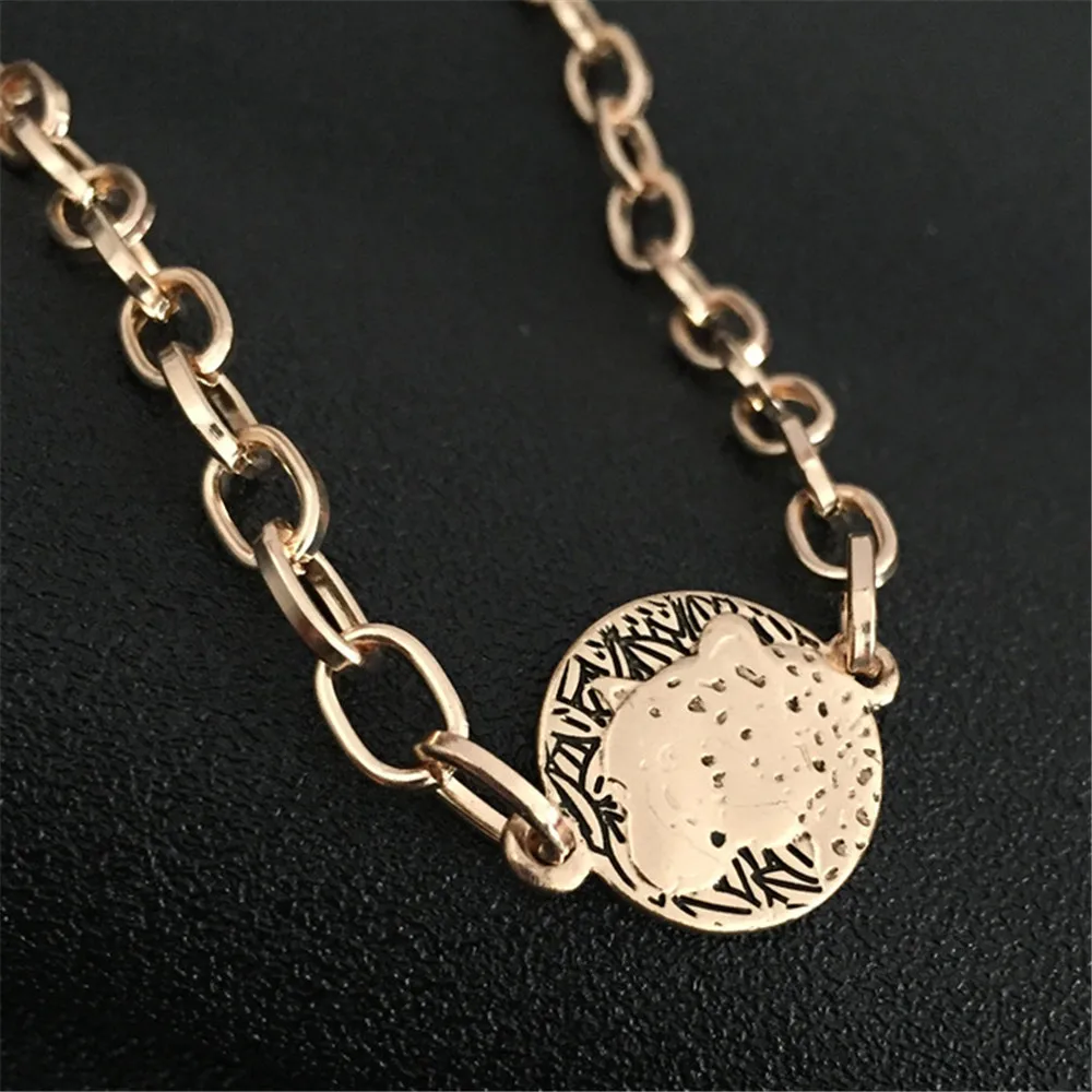 Ожерелье-чокер с подвеской в виде монеты золотого цвета на короткой цепочке с подвеской в виде леопардовой монеты для женщин и мужчин, ювелирное изделие
