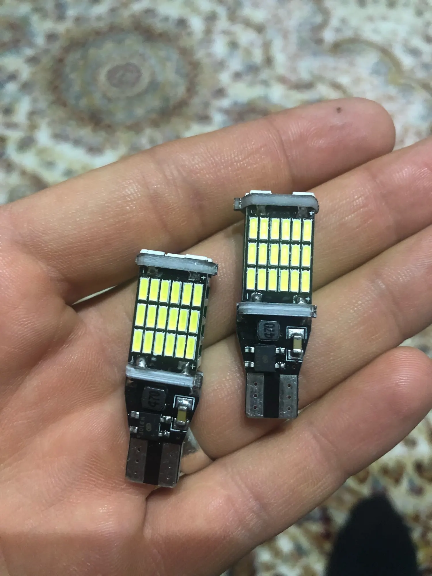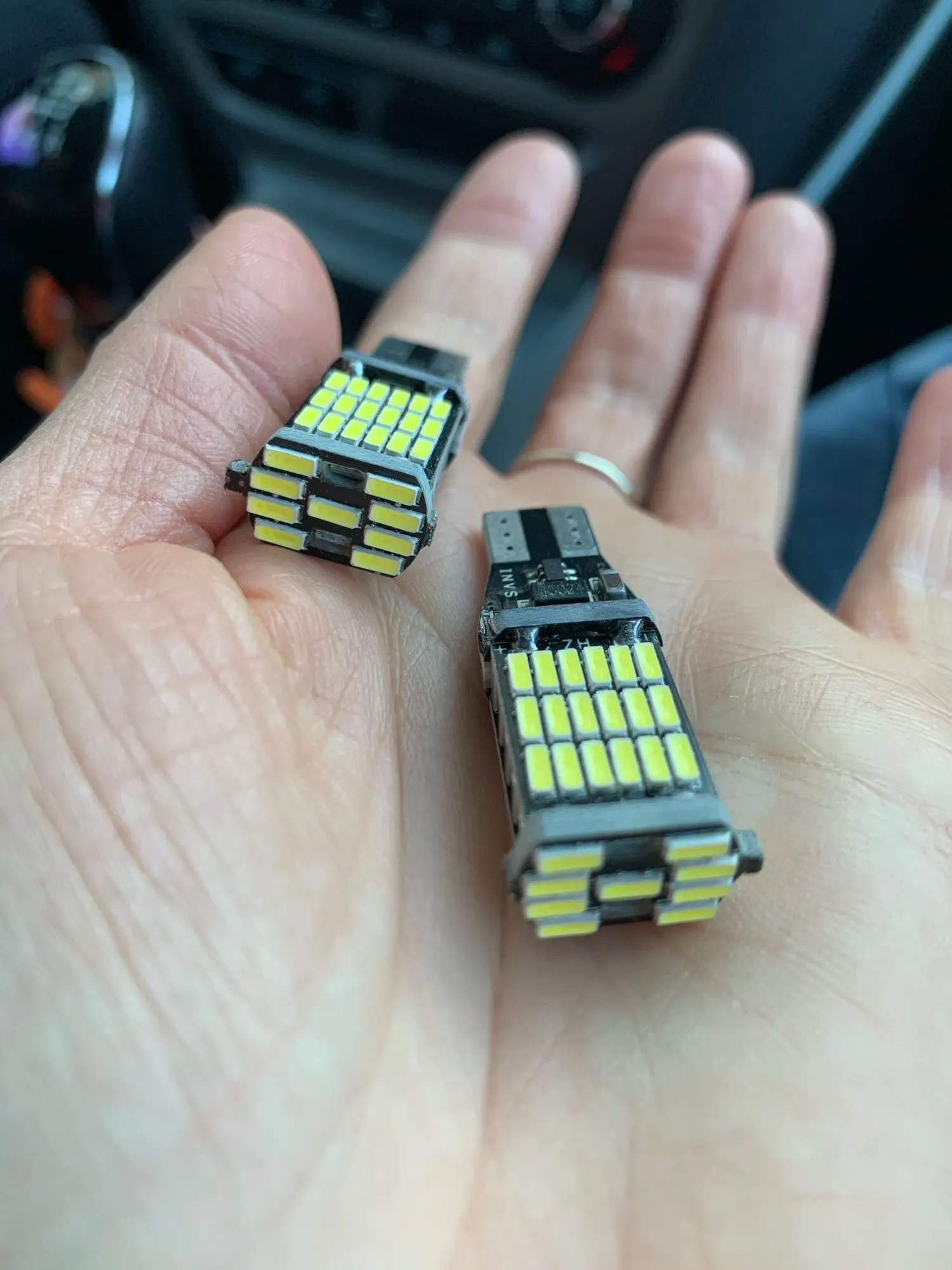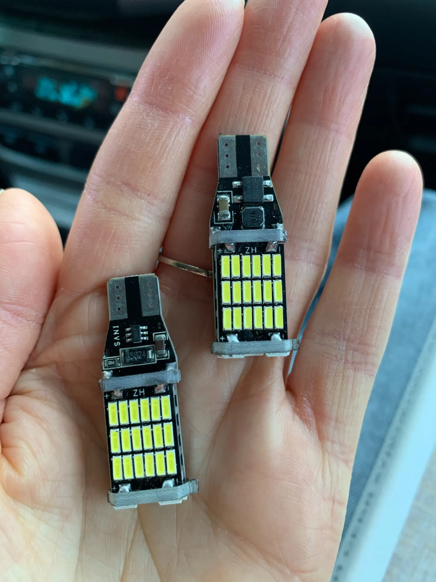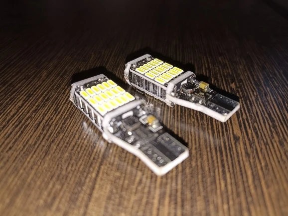 Брав на Шкода Карок.тепер в мене і ззаду "Фул-лед" світять багато яскравіше,задній хід чисто білий.на фото ліворуч лед,праворуч звичайна лампочка. чи то вгадав так що всі чотири лампочки (діоди) вставив -і світять,чи драйвери стоять біполярні,що все одно як ставити.
