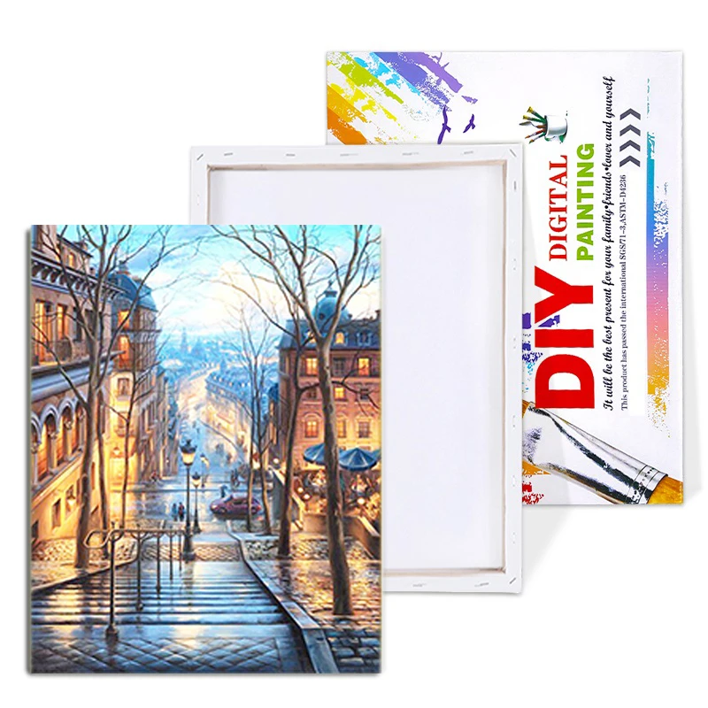Раскрашивание по номерам городской пейзаж на холсте с рамкой для ри...
