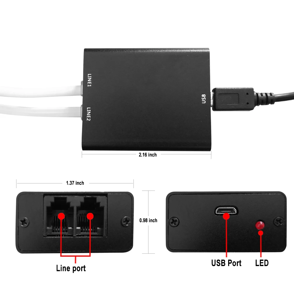 3. Разъем для использования: подключите телефонную линию к порту RJ11, подключите usb-адаптер питания 5 В для начала записи. Вы можете разместить его в офисе, гостинице, доме с простым подключением, затем он автоматически начнет запись при телефонном звонке.