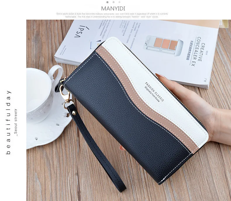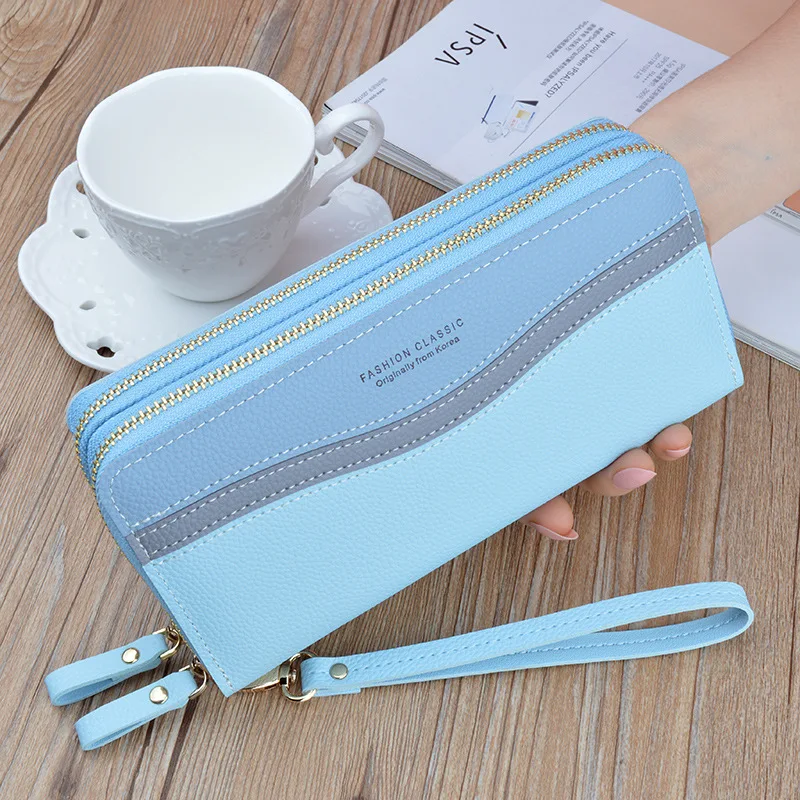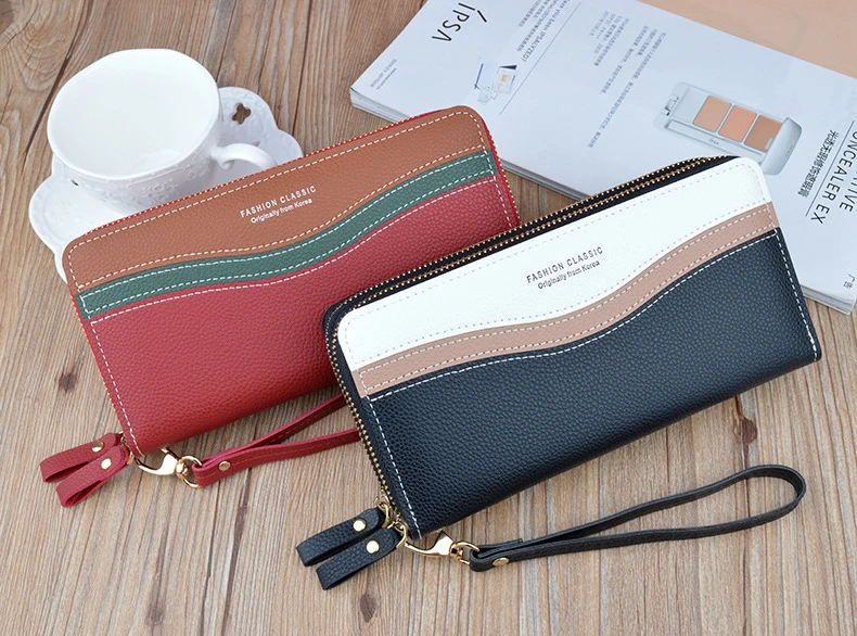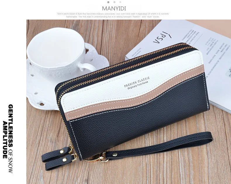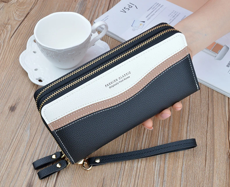 Новый стильный женский длинный клатч на двойной молнии, модный контрастный цвет, Большой Вместительный двойной кошелек, сумка для мобильного телефона