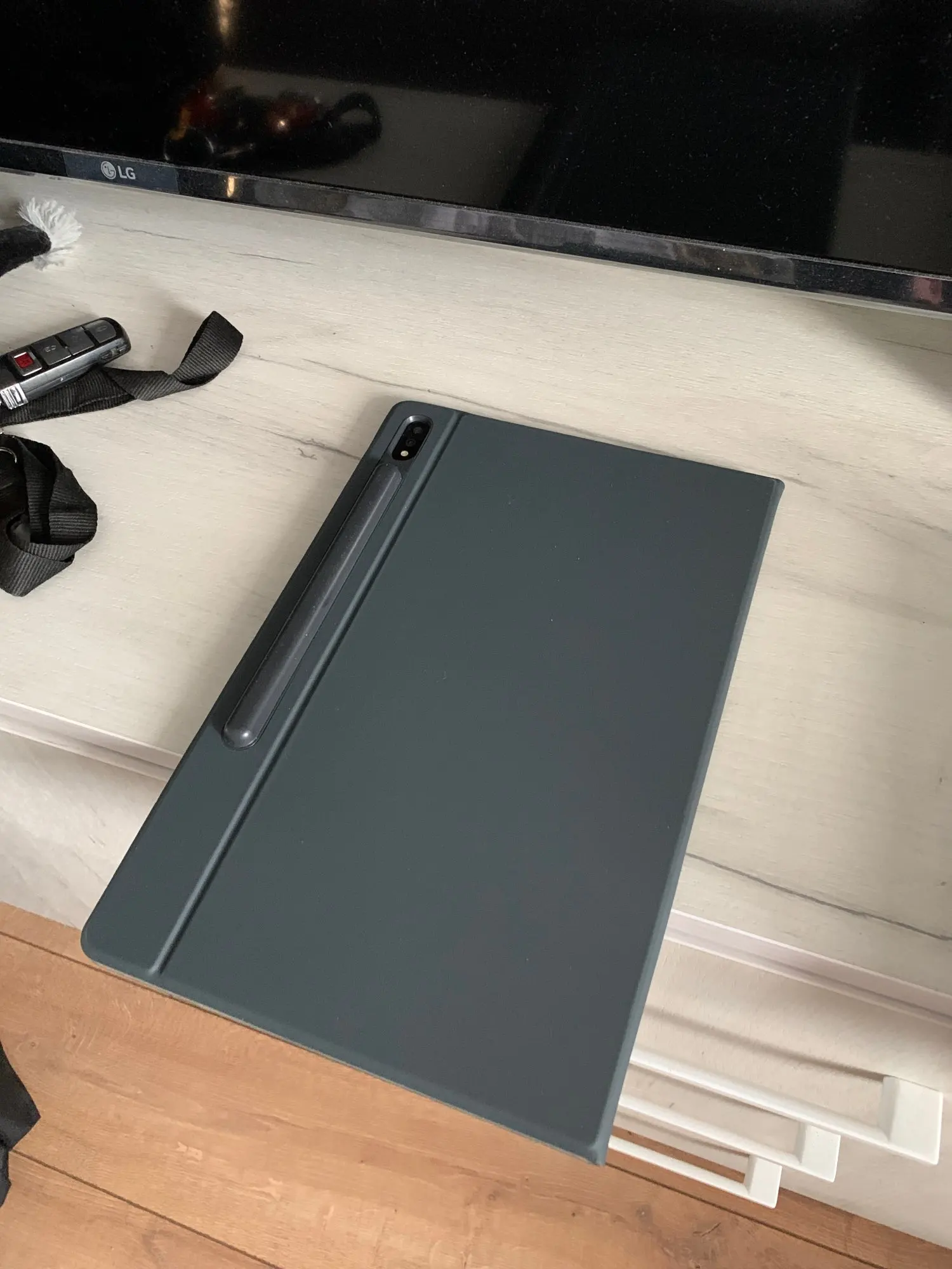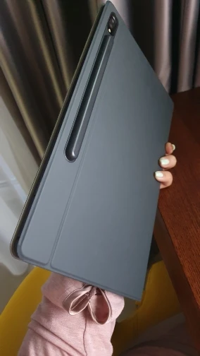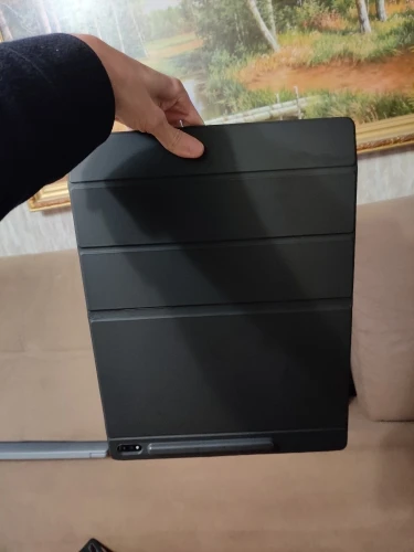 Отличный чехол для планшета Samsung tab s7+. По ощущениям как оригинал. Магниты очень хорошо держат как сам планшет и когда закрываешь крышку. Внутренняя часть на ощупь очень приятна (не плохо собирает грязь). При использовании s-pen слепых зон не было. В общем чехол мне очень понравился, только вот очень легко заляпывается. Рекомендую.