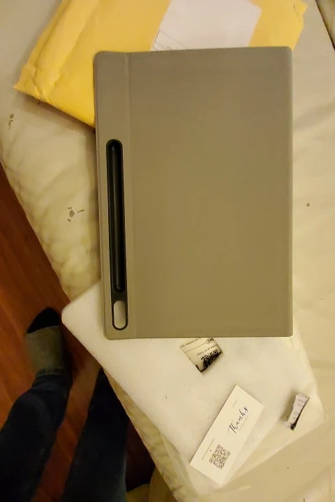 Очень довольна и продавцом и товарами. В прошлый раз купила у них чехол на Samsung tab s6, качество отличное! Когда купила s7+ они чехлов ещё, к сожалению, не выпустили и пришлось купить у другого продавца. Другие чехлы не закрывают ручку и это ужасно мешает, она постоянно отпадает, когда берёшь планшет или пытаешься с него читать, держа в руках(особенно злит искать её ночью в кровати!). Поэтому написала этому продавцу, он пообещал написать, когда чехол появится в продаже и... написал! Не ожидала такой внимательности. Чехол такой же как и на s6 приятный материал, н какого запаха, крепко держится, закрывает ручку, планшет реагирует на открывание/закрывание. В отличие от других чехлов с этим чехлом планшет плотно стоит, несмотря на свой большой размер. Доставка 12 дней. Очень рекомендую!