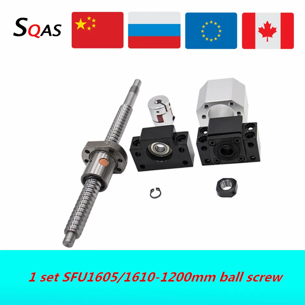 Комплект шариковых винтов для склада в ЕС SFU1605, 1200 мм, шариковый винт, Концевая обработка с BK12 BF12 + Одиночная гайка + Корпус гайки + муфта для детали ЧПУ