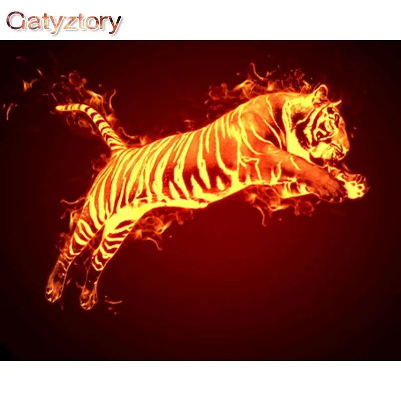 GATYZTORY DIY живопись по номерам пламя Тигр краска по номерам для детей фоторамки настенная фоторамка 40x50 см фоторамка