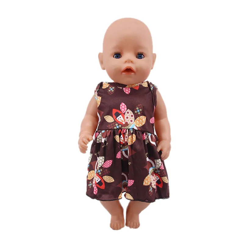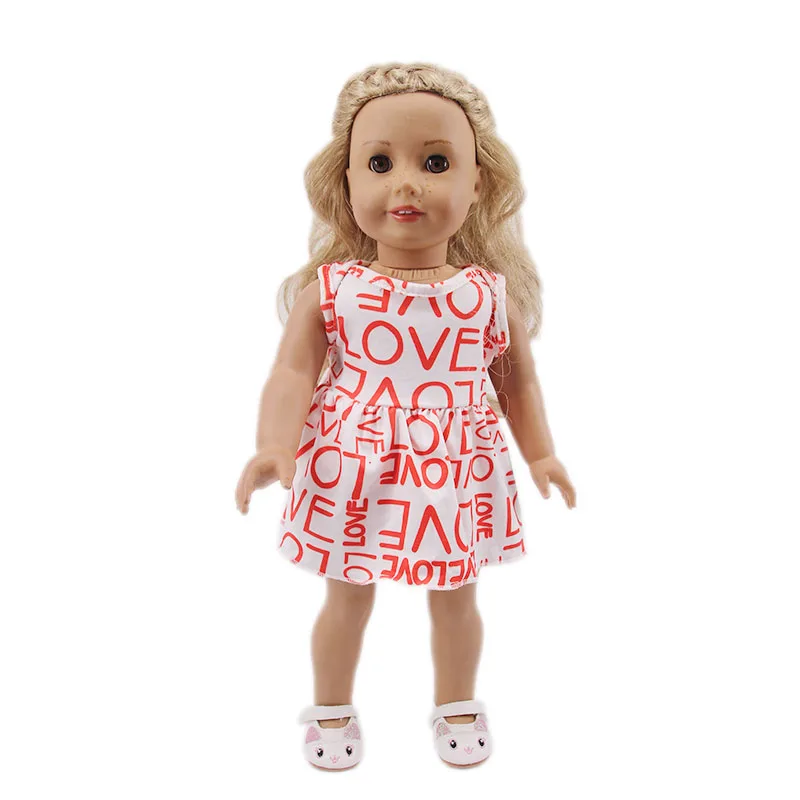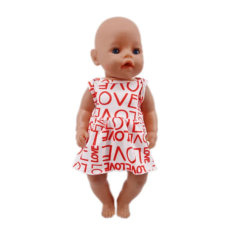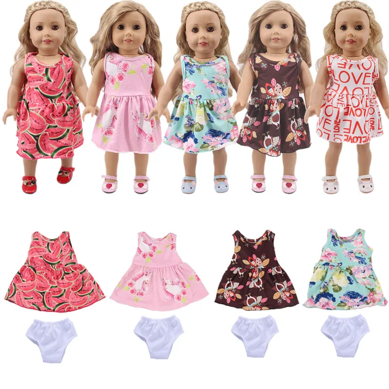 Платье + однотонные трусики, с буквенным принтом в горошек, для 18-дюймовых американских кукол, для девочек 43 см, для новорожденных, аксессуары