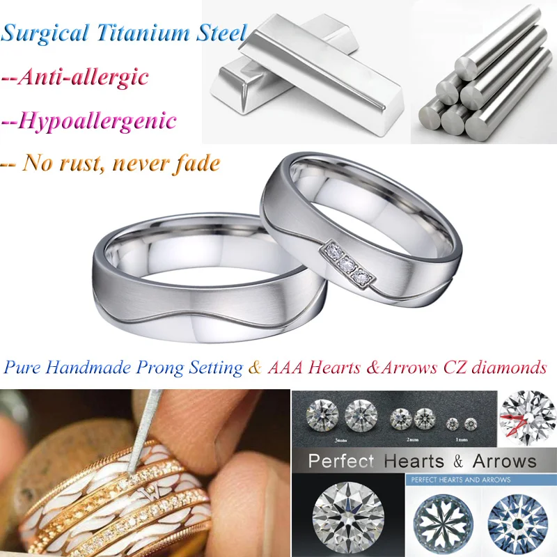 Напоминание:Цена за 2 кольца: сначала выберите мужской размер кольца, затем вы можете выбрать размер кольца для женщин.Доступные размеры:Женские кольца Размер США: 5 6 7 8 9 10Мужские кольца Размер США: 7 8 9 10 11 12 131. Материал: хирургическая нержавеющая сталь 316L2, Швейцарский AAA кубический цирконий бриллиант3. Оригинальный цвет титановой стали-серебристый, который никогда не выцветает. Если цвет золотистый, он является настоящим 18К золотого ионного покрытием.Эти обручальные кольца изготовлены из хирургической стали, которые очень прочные и никогда не окисляются и являются гипоаллергенными.