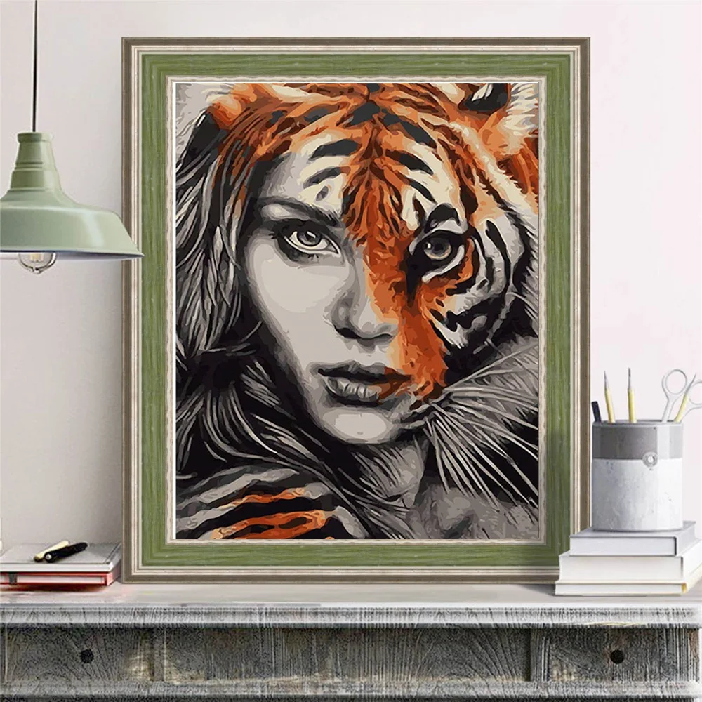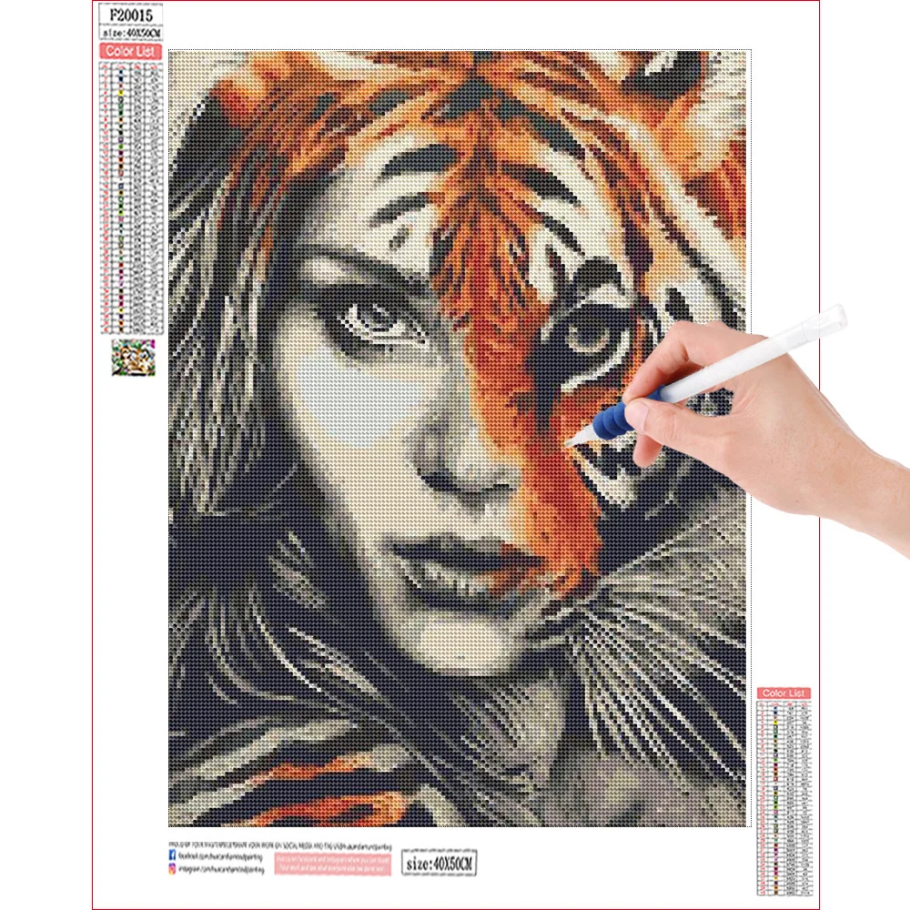 HUACAN Алмазная картина тигр Алмазная вышивка девушка алмазная мозаика полная выкладка люди искусство стены